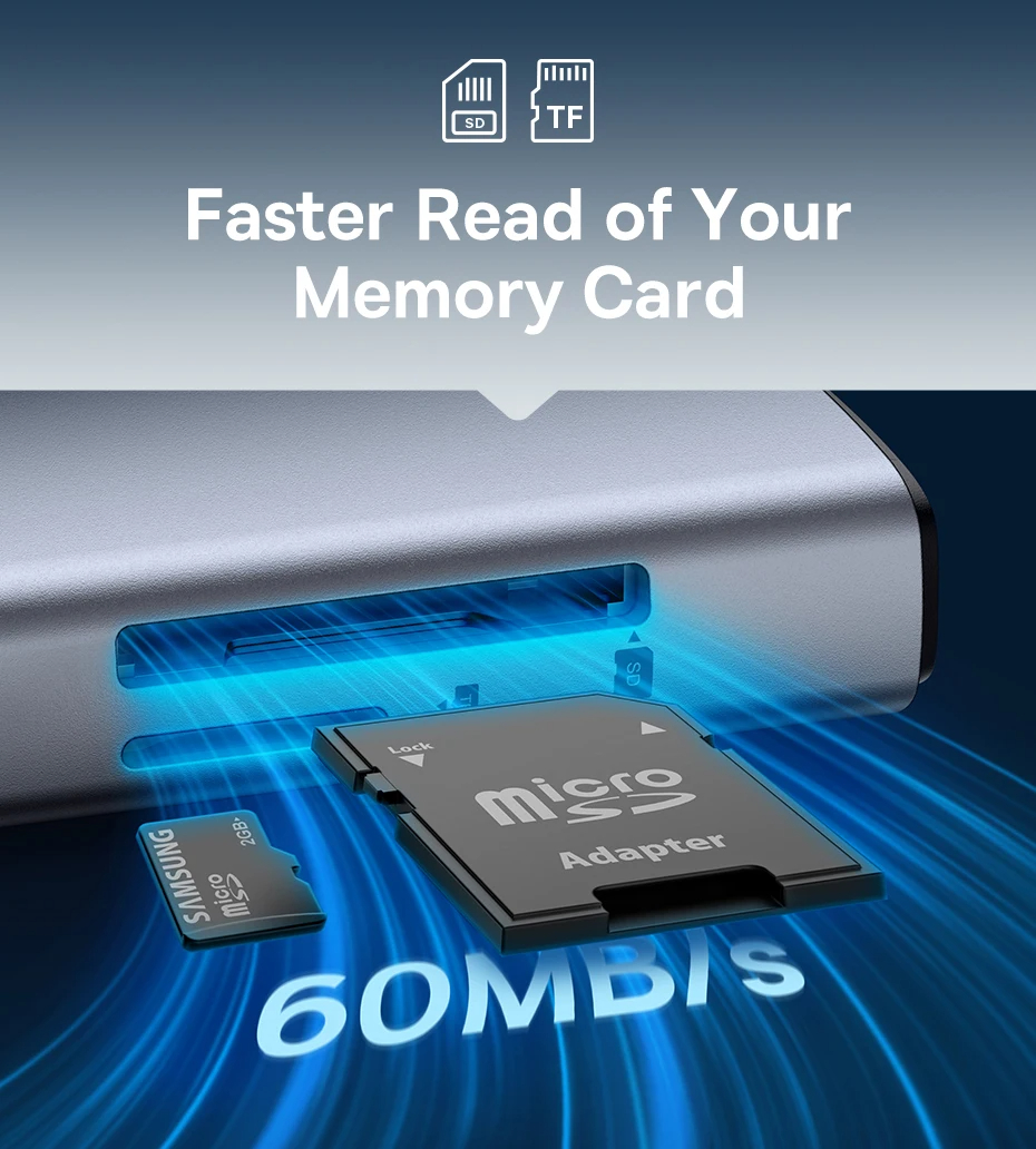 SD and TF card slots, each supporting 60MB/s transfer rates.
