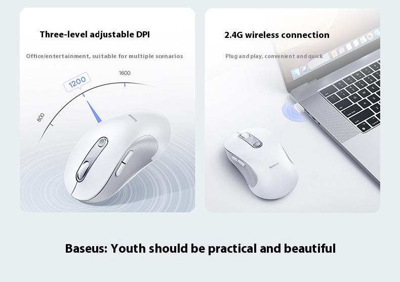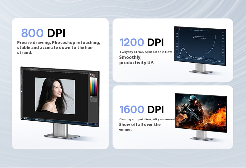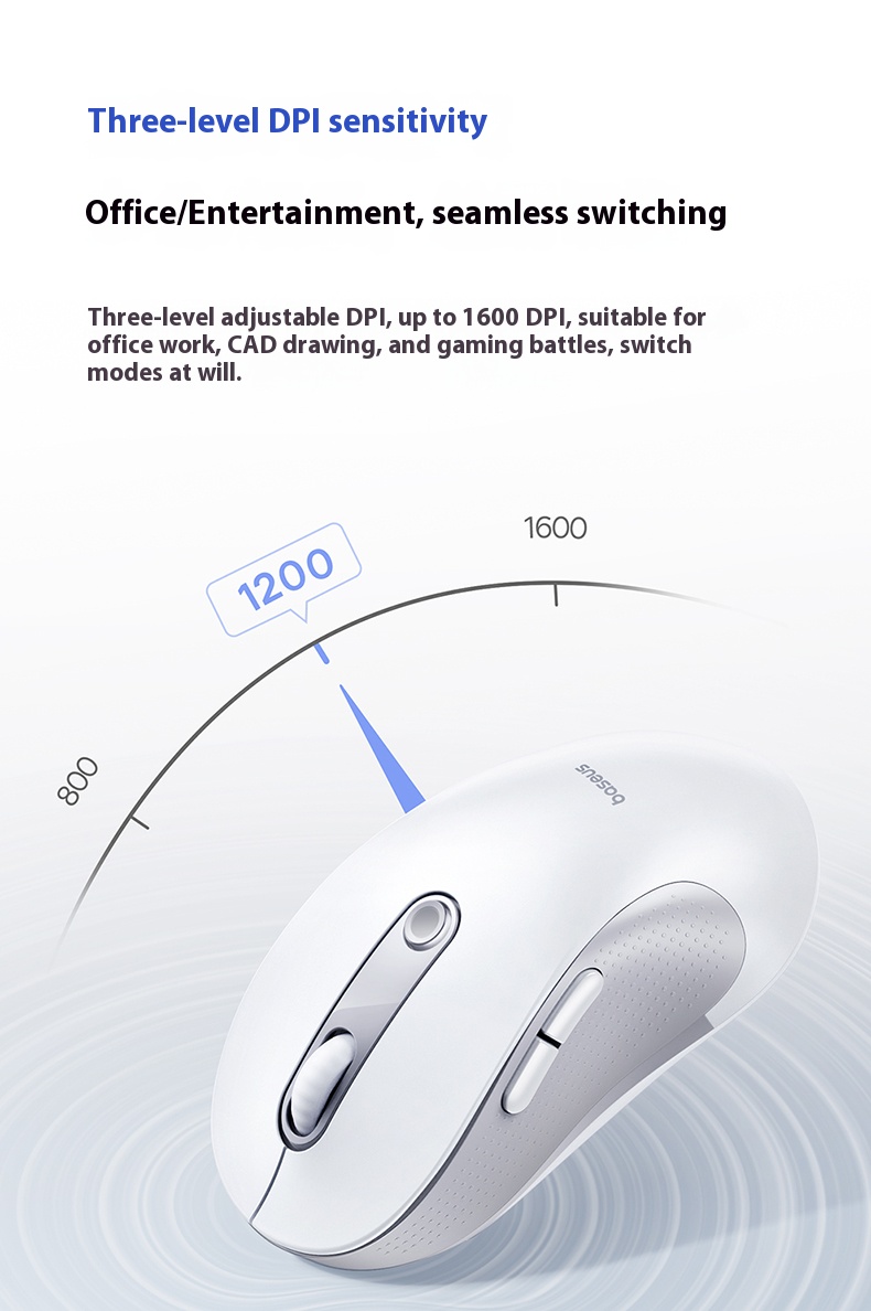 4. Adjustable DPI Levels: 800/1200/1600 DPI for various scenarios, including office work, design, and gaming.