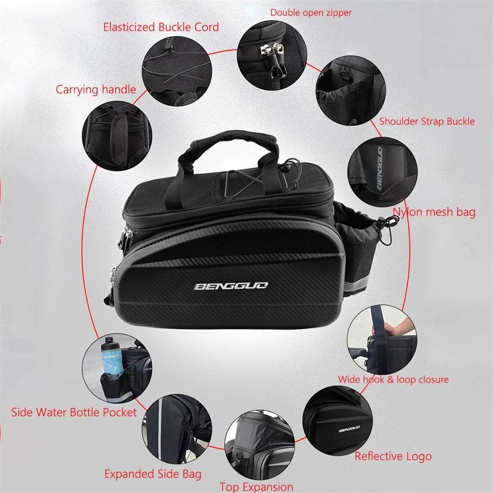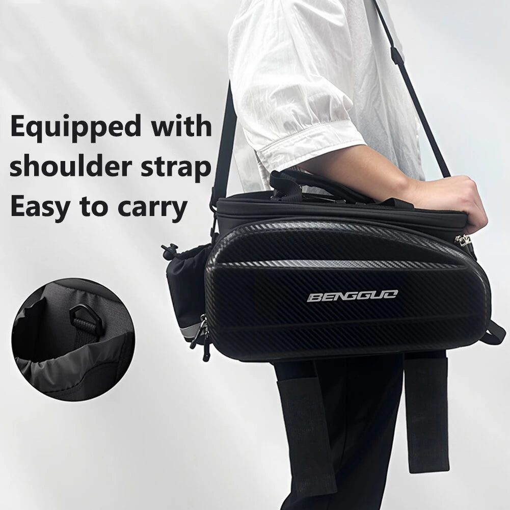 2. EVA Hard Shell: Made from sturdy EVA material, this bike rack bag resists compression and deformation, protecting your essentials.