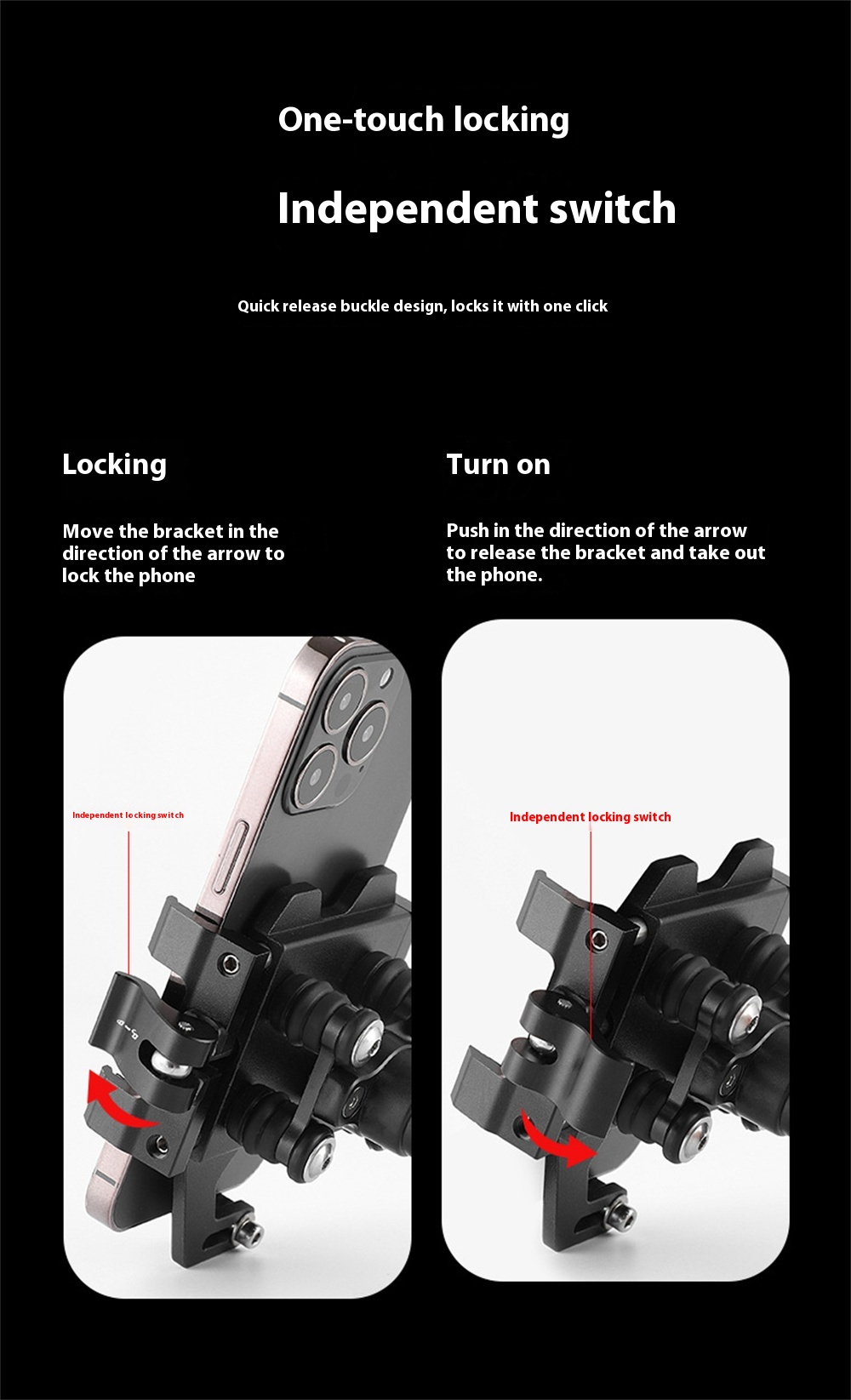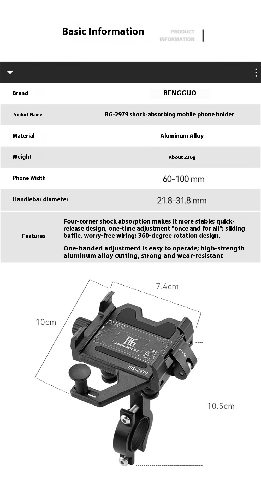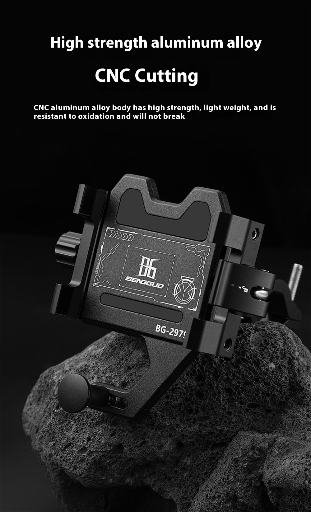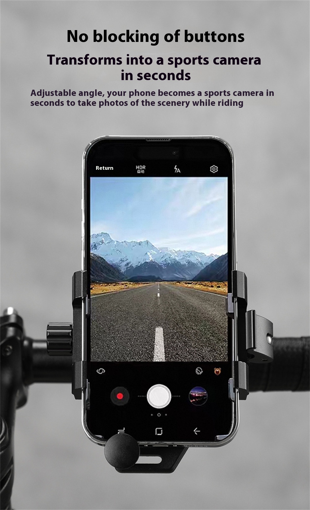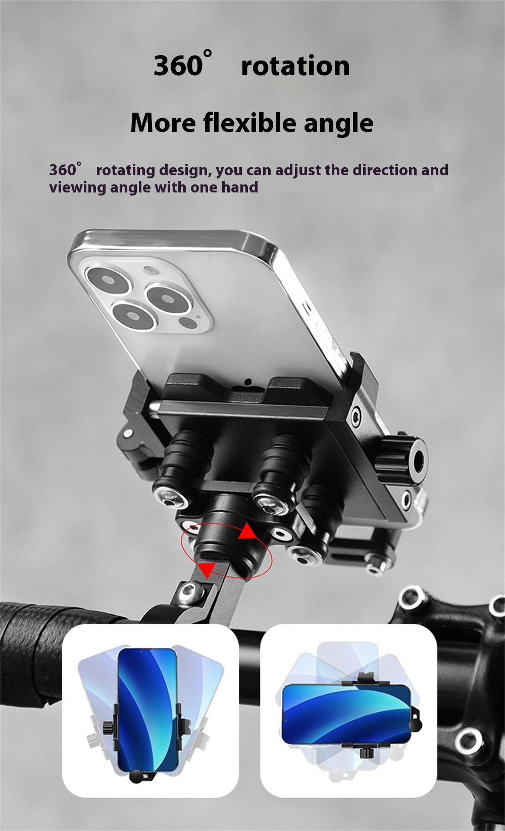 1. Material Aluminum Alloy: Crafted from long-lasting aluminum alloy, this bike phone mount withstands the rigors of cycling.