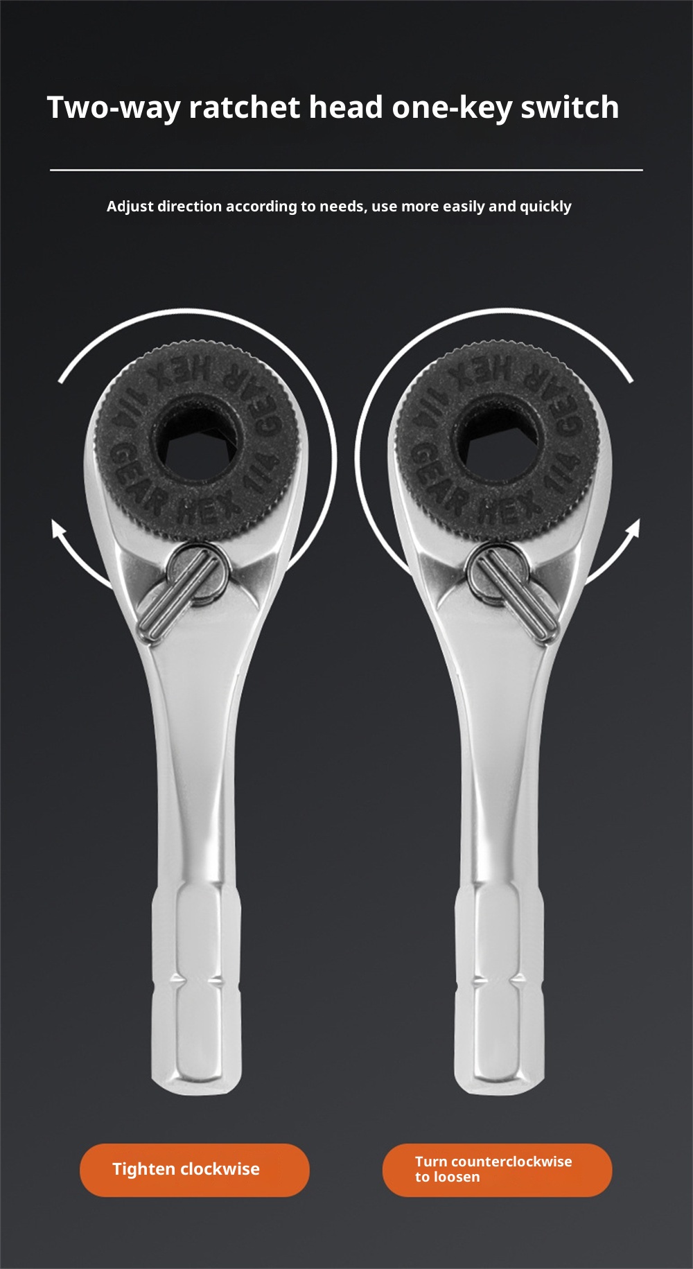 1. Bidirectional Ratchet Head: Effortless one-click switch allows you to adjust the socket torque wrench head direction as needed, making use more comfortable and quicker.