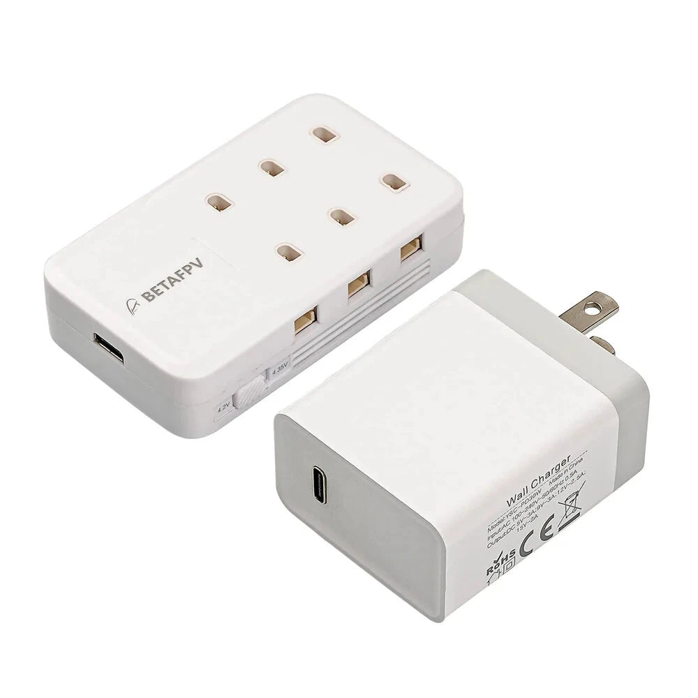 The 30W power adapter supports multi-charging protocols including PD3.0 /QC3.0/ BC1.2, equipped with 6 ports 1S battery charger with a maximum charging current of 1A, which makes charging faster. 6pcs BT2.0 300mAh 1S batteries can be fully charged in about 25 minutes.