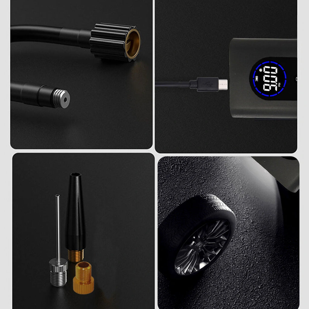 Multifunction: With cordless portable design, pump allows to reach all tyres of your bicycles, motorcycles, cars (including SUVs). Also equipped with 3 nozzle adaptors for mattresses/airboat/toys/sports ball/ inflatables.
