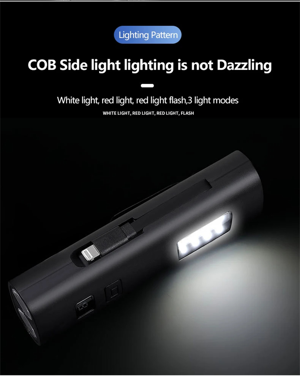 1. Multifunctional Lighting: This LED bike light transcends traditional design, serving as a work light, bicycle headlamp, emergency phone charger, and chest light, addressing various lighting and safety needs for every occasion.