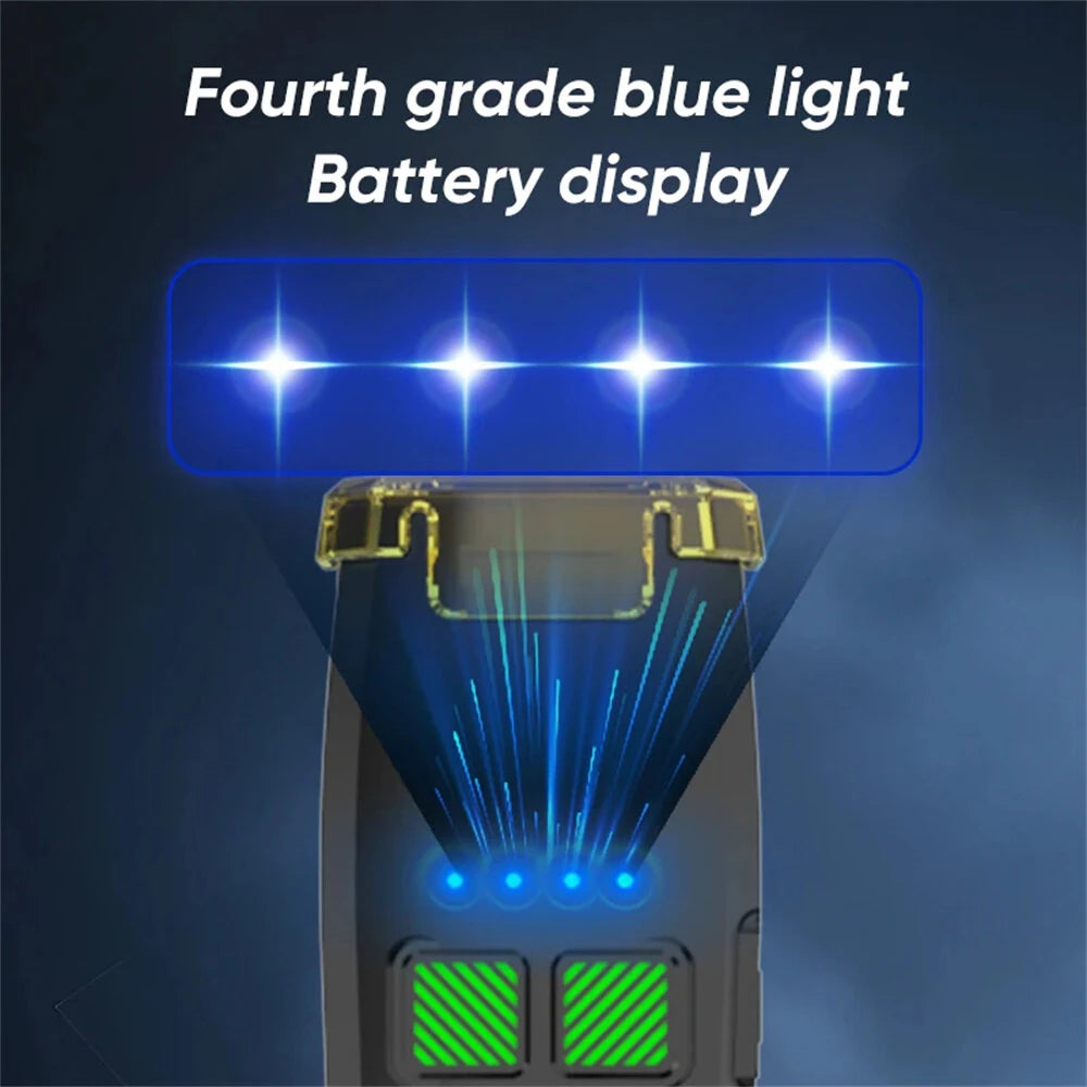 5. Four blue light battery level display, allowing real-time observation of battery level. Equipped with a dustproof fog cover, and it have strong penetration power.