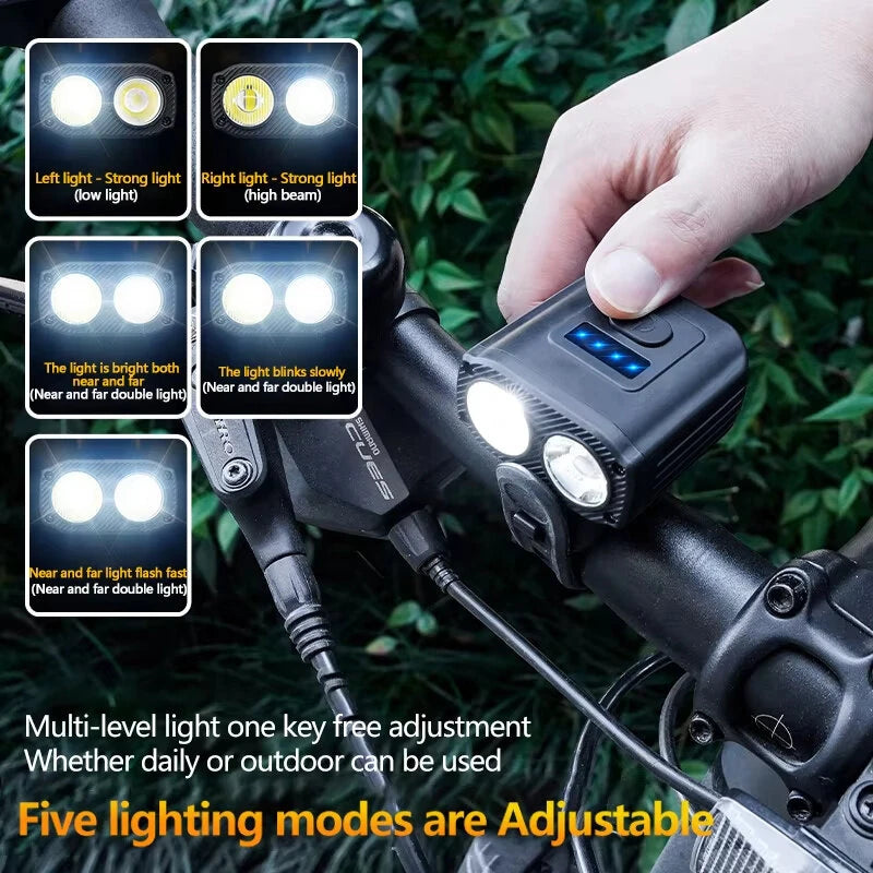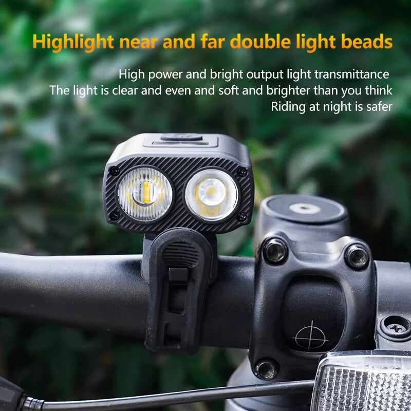 1.Dual-Beam Technology: Enhanced visibility: Our LED bicycle headlight features a long-range beam for distance visibility and a wide-angle beam for broader coverage, ensuring you're seen and can see far ahead on your path.