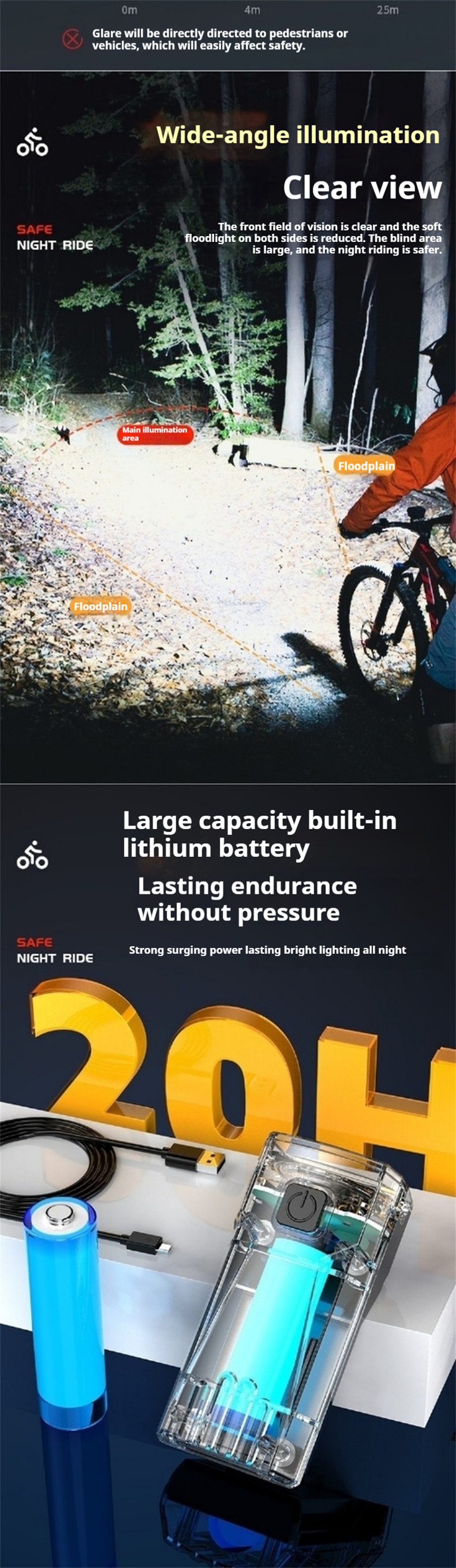 1. High luminosity ensures visibility during night rides.