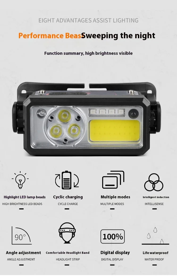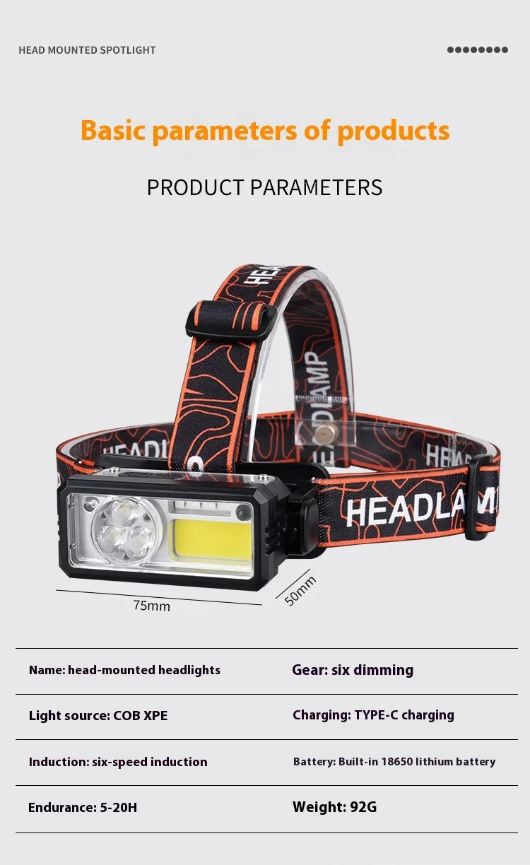3.This intelligent headlight is designed for outdoor enthusiasts, perfect for activities like running and fishing.