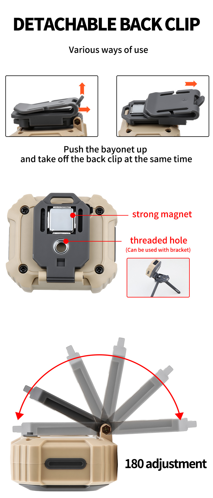 3. Detachable Back Clip: Equipped with a back clip and strong magnet for versatile use. Compatible with brackets and easy to attach to various surfaces.