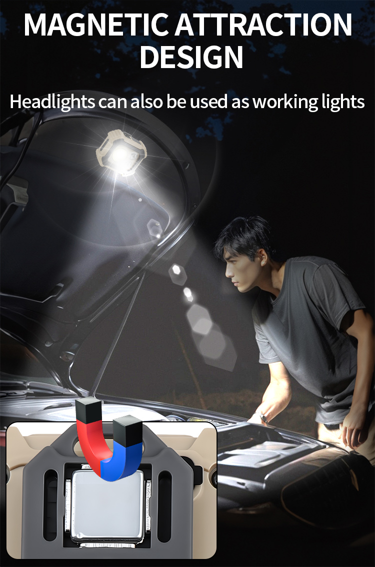 4. Magnetic Attraction Design: Can be mounted on metallic surfaces, doubling as a work light for specific tasks.