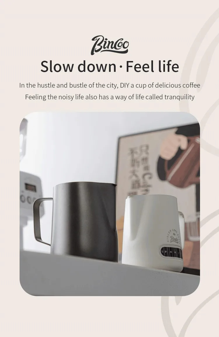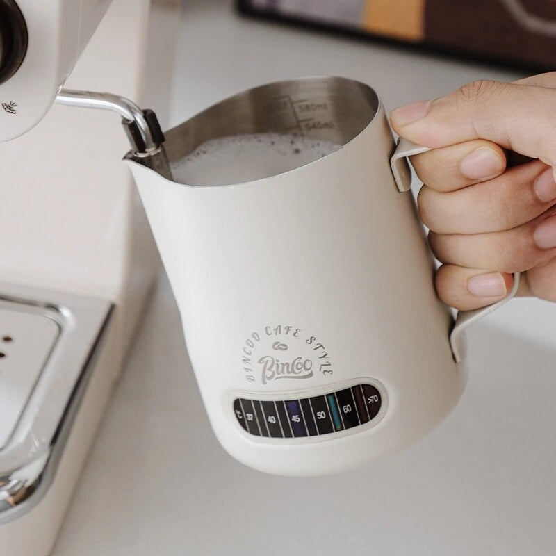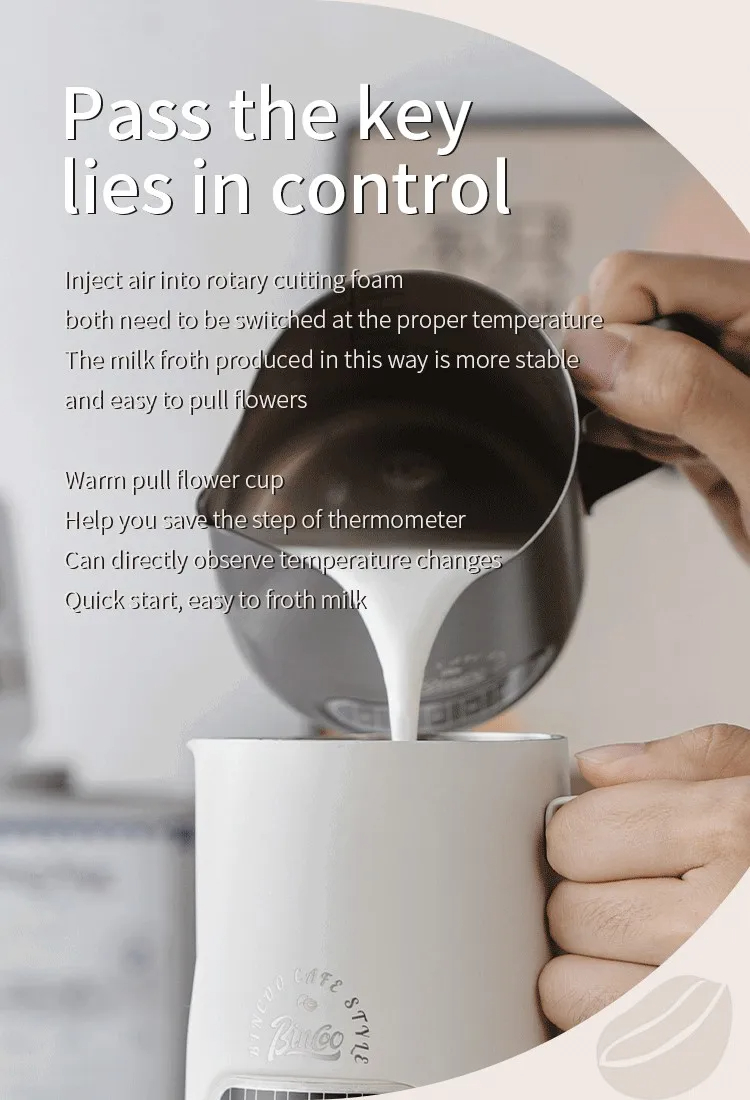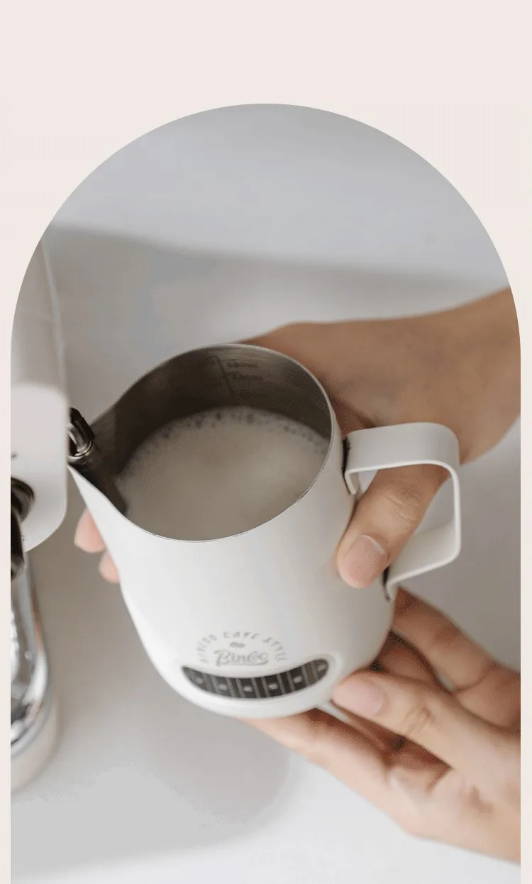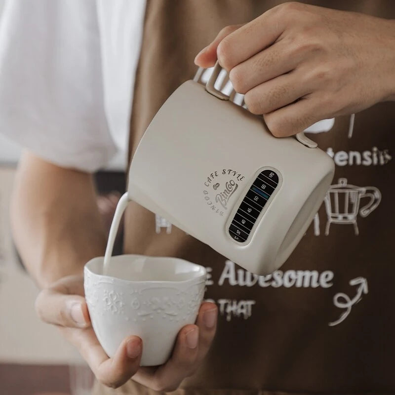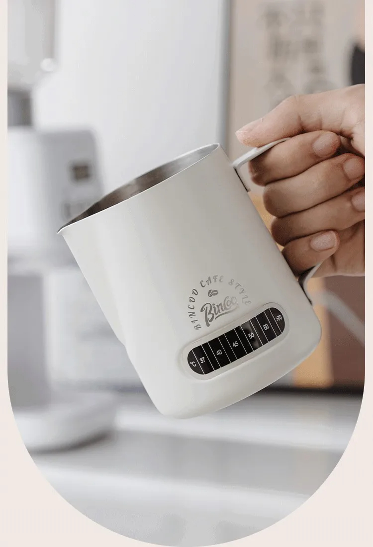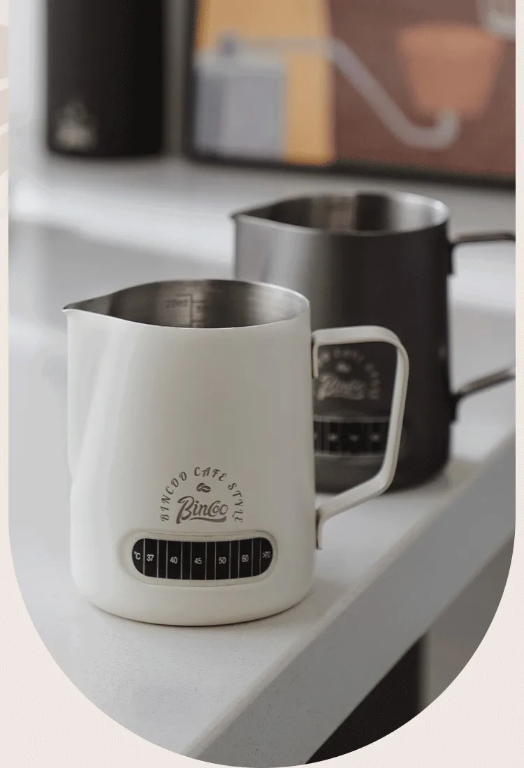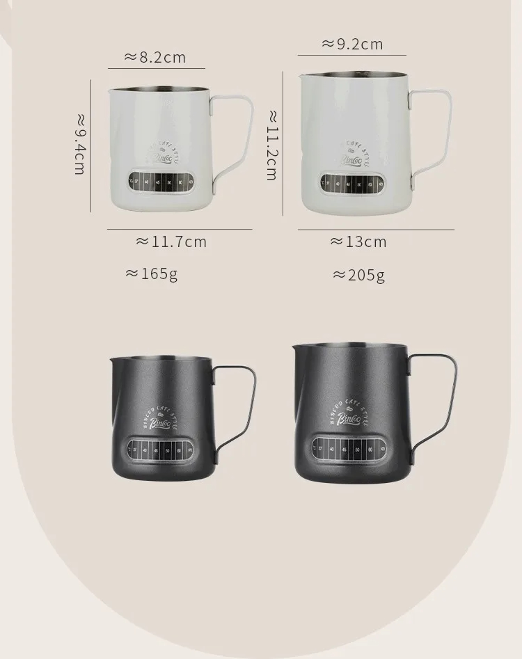 Built-in Temperature Display: No need for a separate thermometer—easily monitor milk temperature directly on the pitcher for perfect frothing every time. High-Quality Craftsmanship: Made with precision, featuring a Tefloncoating for a premium look and feel. Durable304 stainless steel interior ensures long-lasting performance. Ergonomic Handle: Designed for comfort, the ergonomic handle provides a secure and comfortable grip, making it easier to create detailed latte art. Streamlined Spout Design: The outlet's design allows for precise pouring and detailed latte art creation, offering clear patterns and consistent texture. Dual Size Options: Choose between the 600ml large pitcher for extensive designs or the 400ml small pitcher for delicate details, accommodating all your latte art needs.