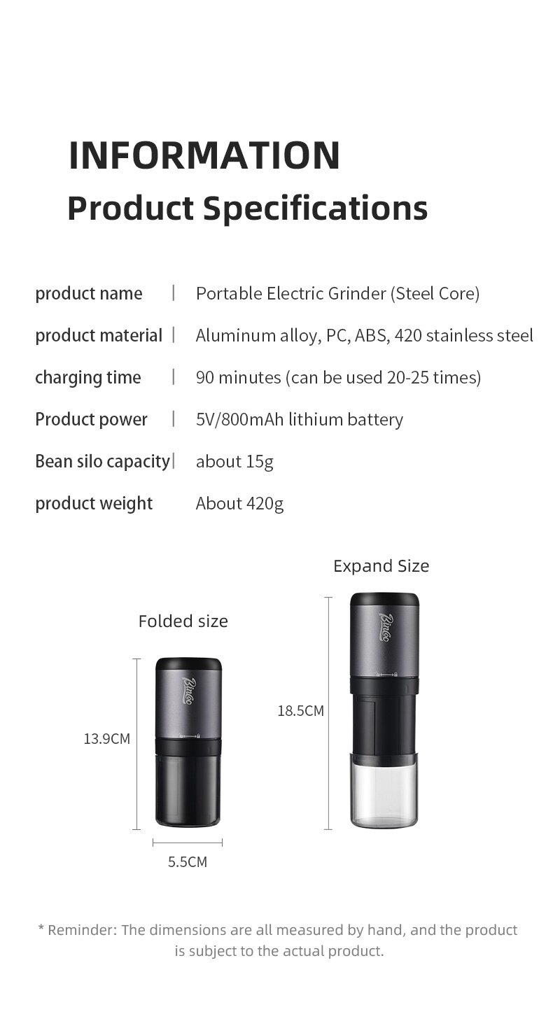 - Compact and User-Friendly: With a 15g bean capacity and a transparent powder container, it grinds beans in 1-2 minutes, making it easy to monitor and adjust grind size.