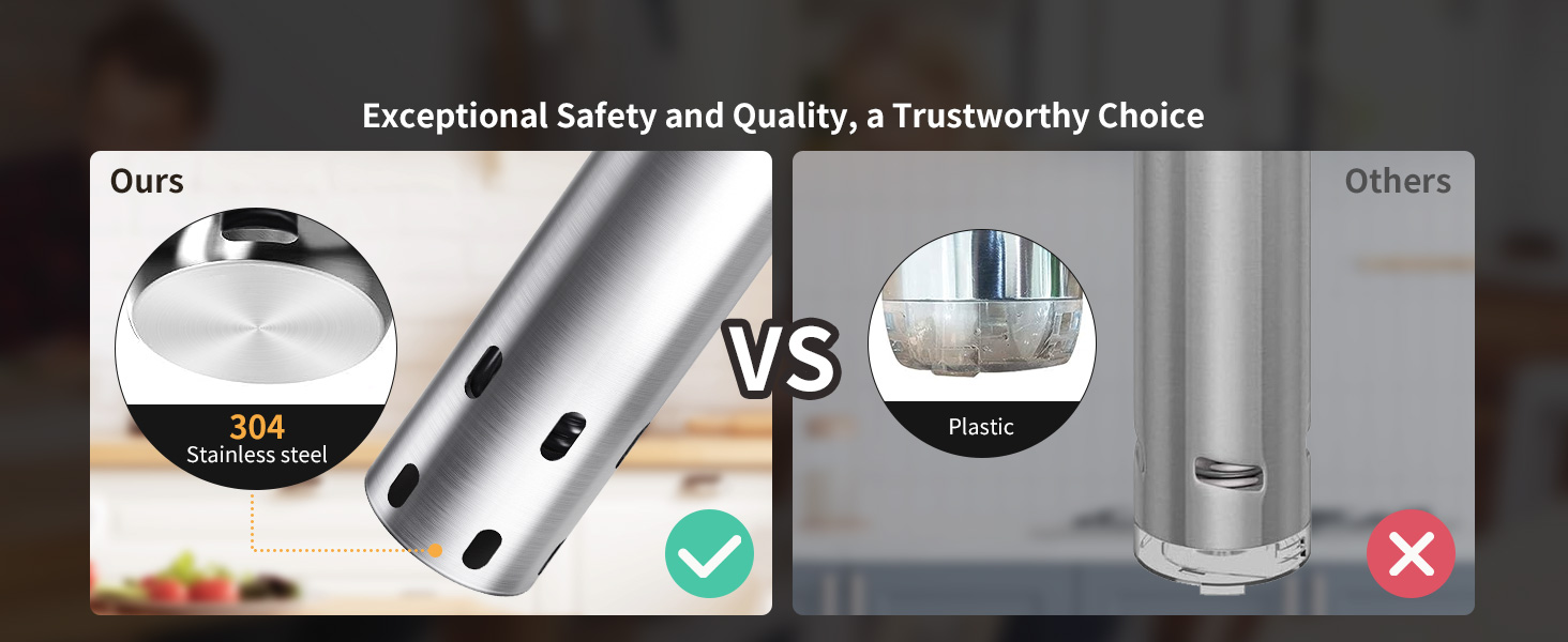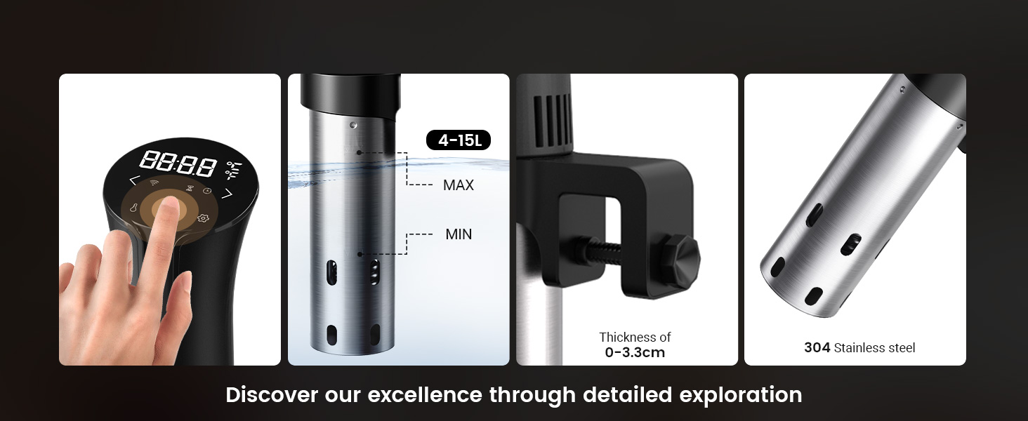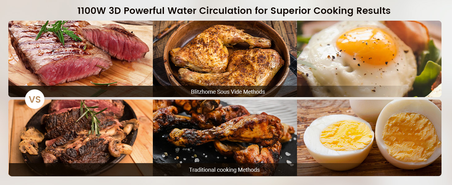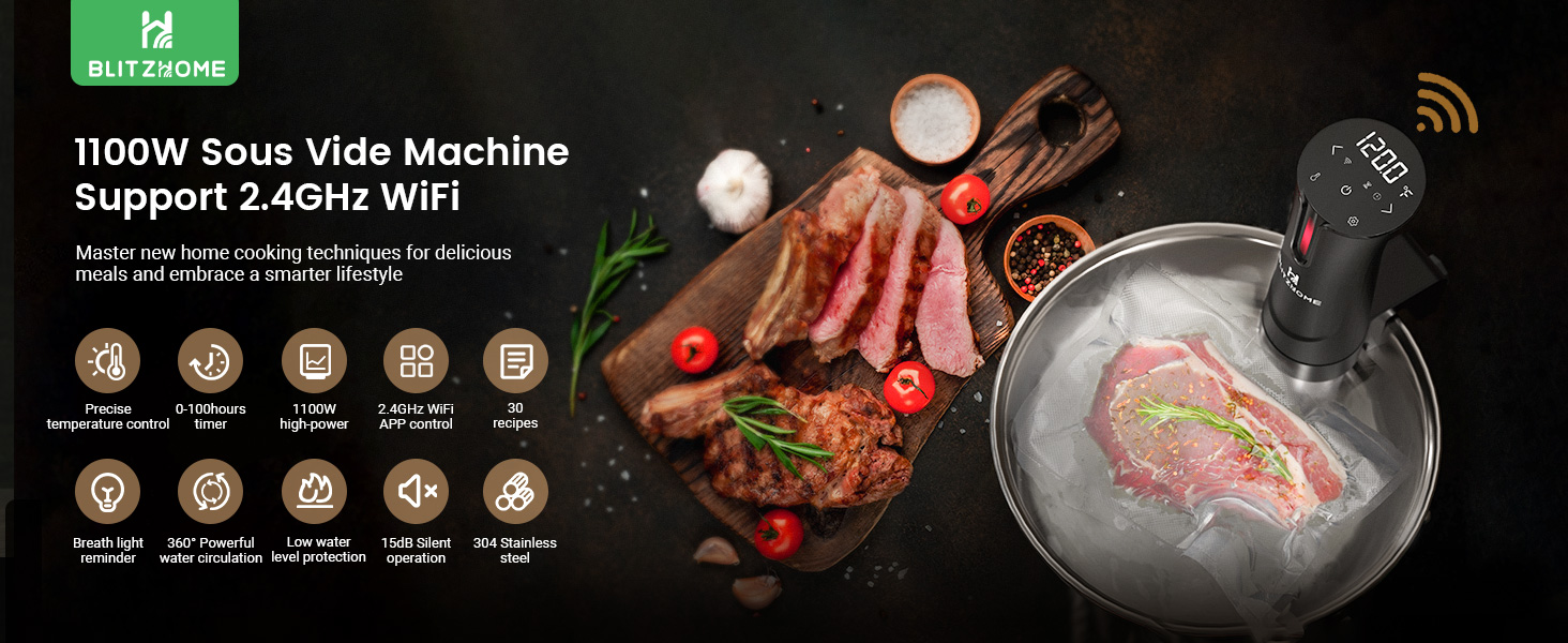 Brand: BlitzHome Product Name: Sous Vide Cooker Model: SV2209 Temperature control accuracy: ±0.5°C Power: 1100W Voltage: 220V-240V 50-60Hz , 110V-120V 50-60Hz Maximum application capacity: 12L Maximum immersion depth: 135mm Minimum immersion depth: 75mm Temperature control range: 25°C-92.5°C (77-198.5°F) Decibel: ≤50dB Motor speed: ≥2500rpm/minAPP: Tuya Smart Plug: EU Temperature probe length: 84mm |