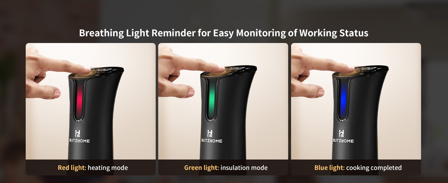 ●Breath Light Reminder Function: Monitor food cooking progress through color conversion of breathing lights.