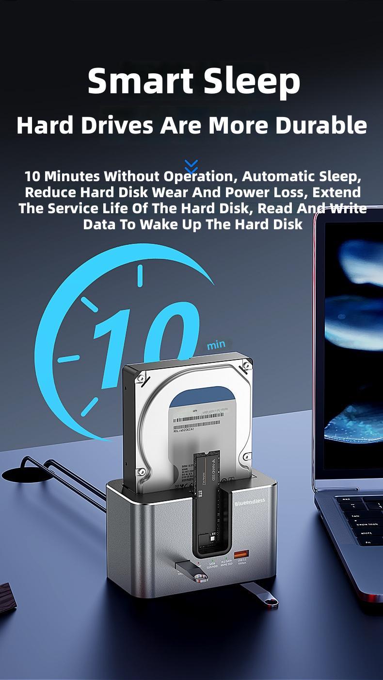 5. Intelligent Sleep Mode: Automatically enters sleep mode after 10 minutes of inactivity to optimize energy consumption while preserving drive health.