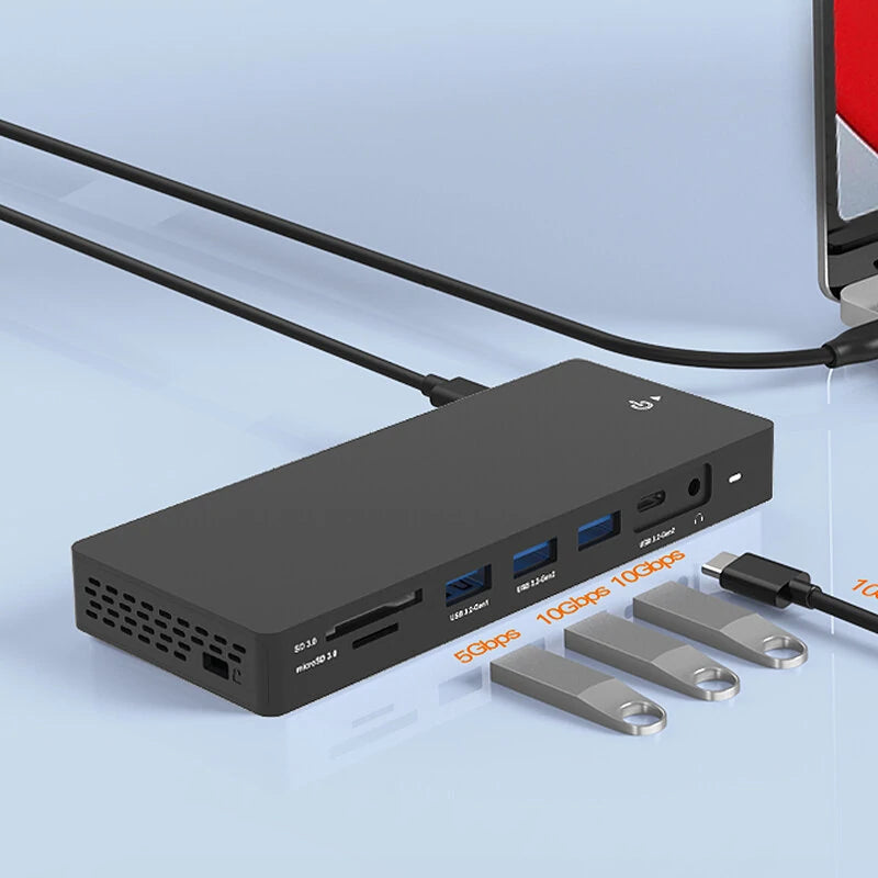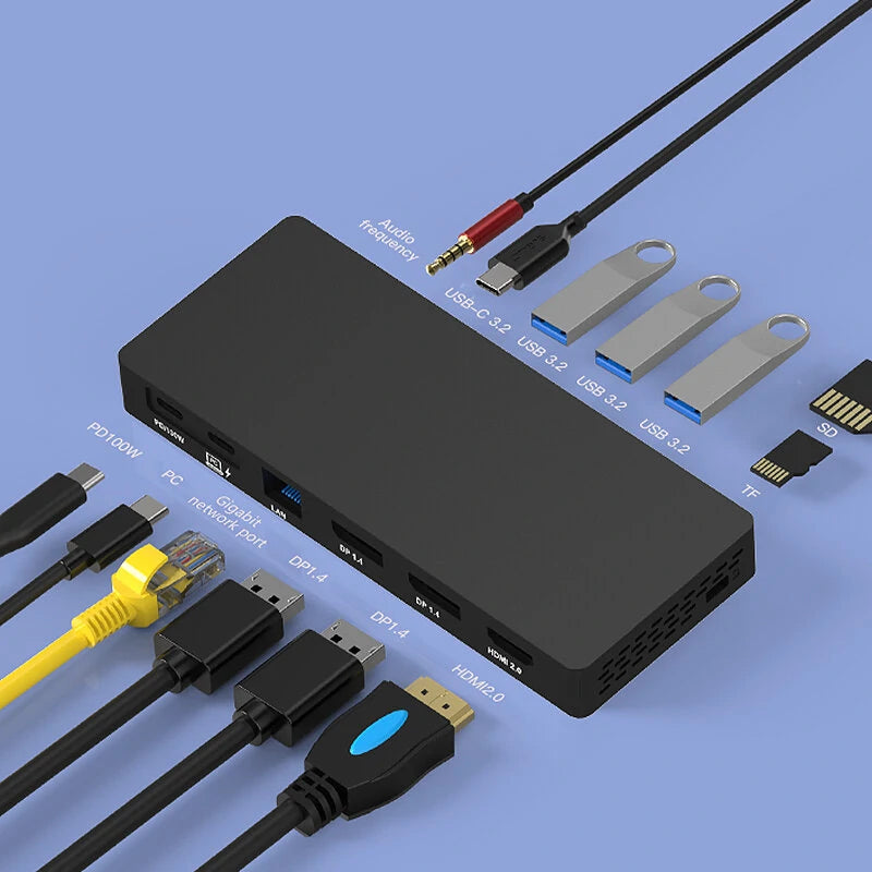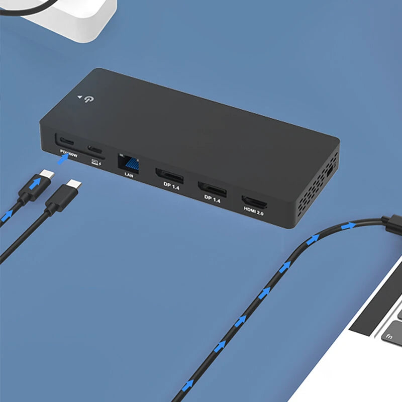 1. Multiple connectivity options: With a wide range of output interfaces including DP1.4, HDMI-Compatible2.0, LAN, USB-C, USB 3.2, SD TF Card Slot, and more, the HP1306 allows you to connect multiple devices and peripherals conveniently.2. High-speed transmission: The HP1306 supports a maximum transmission rate of 10Gbps, ensuring fast data transfer between devices and stable connectivity.