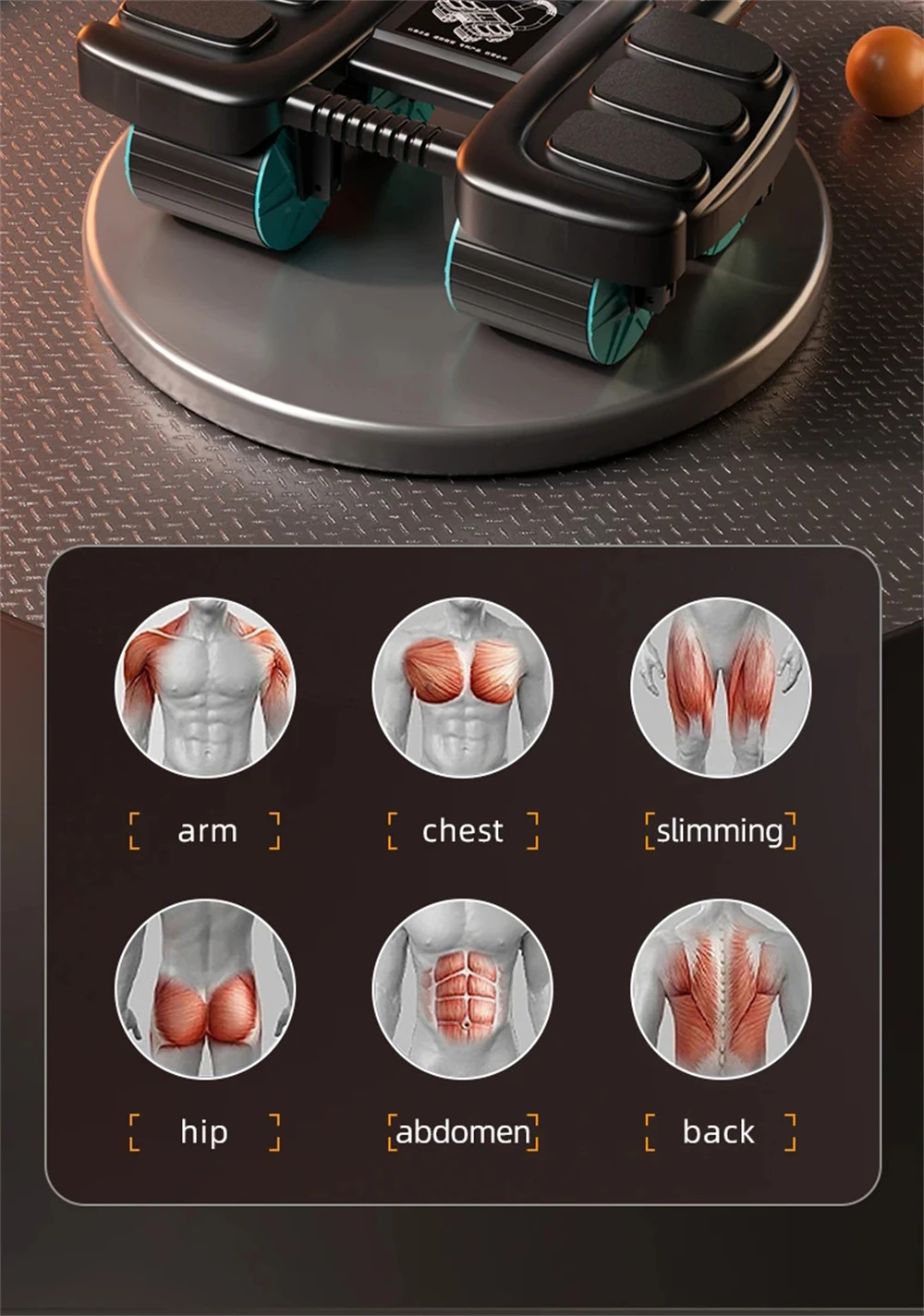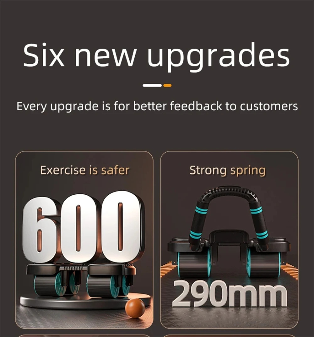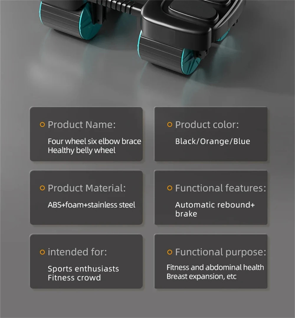 2. Tank-like Four Wheels for Stability: This abdominal wheel boasts a tank-like design with four wheels, ensuring exceptional stability and preventing slips on any surface. The widened wheels feature anti-slip tire textures, providing a secure and smooth workout experience.