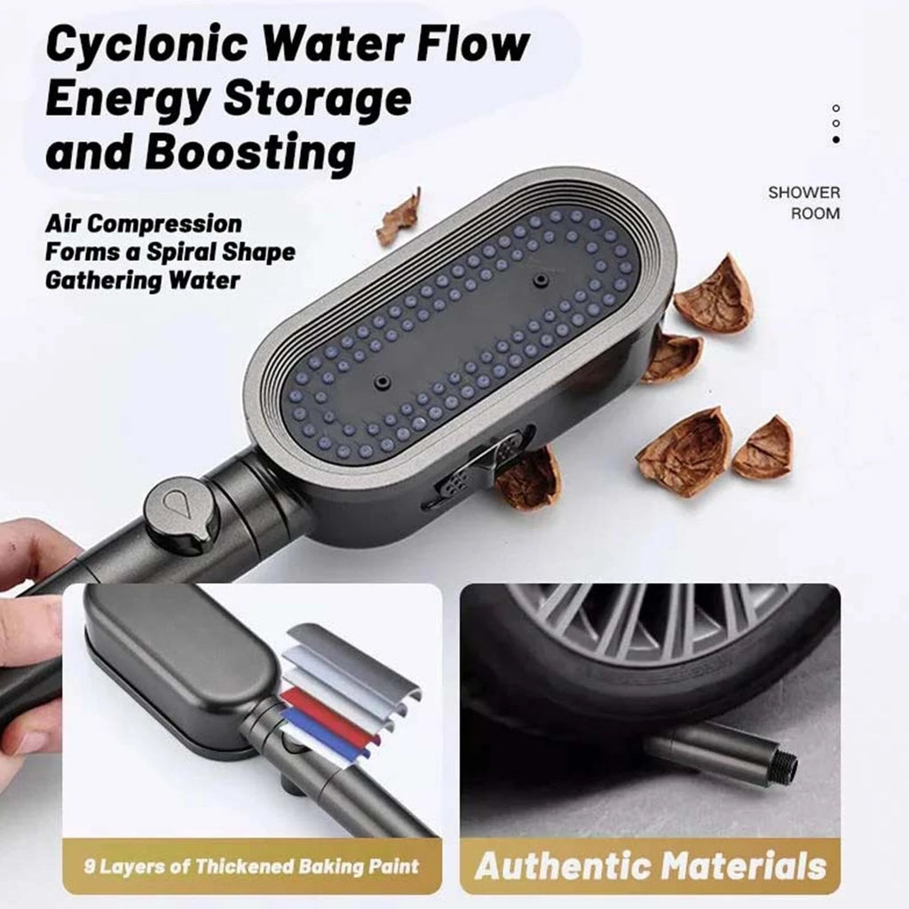 - Enhanced WaterPressure Experience unparalleled shower pressure with our advanced Cyclone Charging Technology. This high-pressure showerhead incorporates air into the water flow to deliver a powerful and revitalizing shower. Enjoy a comprehensive area of water discharge that rejuvenates and refreshes like never before.