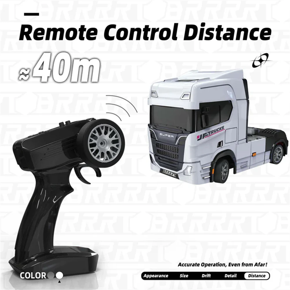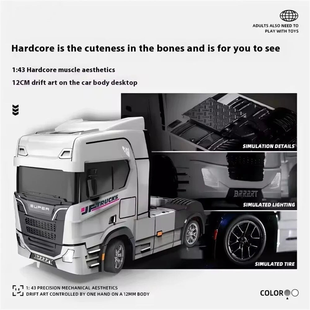 Experience precision drifting in the palm of your hand with the 1/43 Mini Drift RC Tractor Truck – a gyro-stabilized, fully proportional remote control truck designed for smooth control, realistic detailing, and endless fun.
