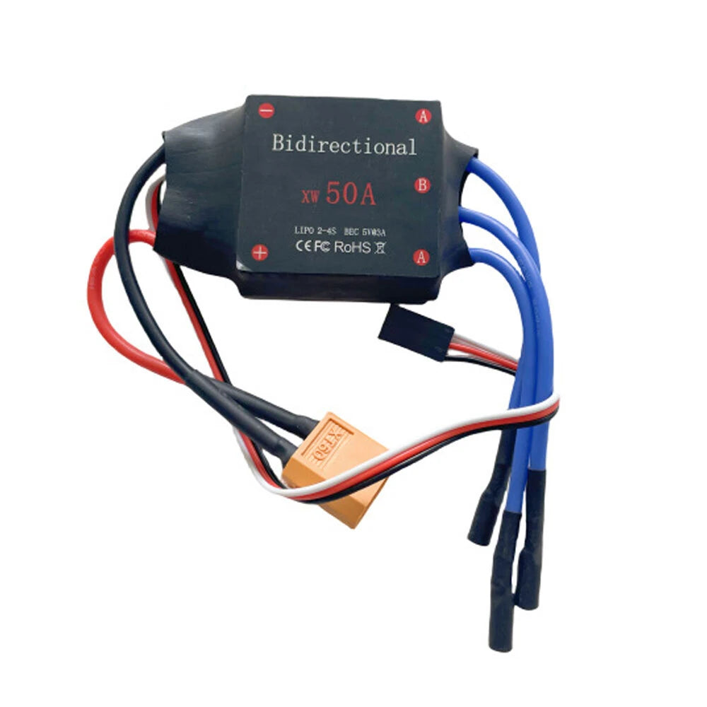 This product uses imported components and is tested at full power before leaving the factory.Can be used for cars, boats and underwater propellers.Bidirectional 1:1 power output, without brakes, direct reverse direction, fast speed, and good control linearity.No need to calibrate the throttle stroke, just plug and play.This product contains UBEC output.Remark:1. When using this product, the remote control throttle stick must be in the middle position, otherwise the ESC cannot be started.2. This product does not need to calibrate the throttle stroke. When the ESC is started, if the motor starts to rotate, you can use the remote controller to fine-tune the throttle to stop the motor.