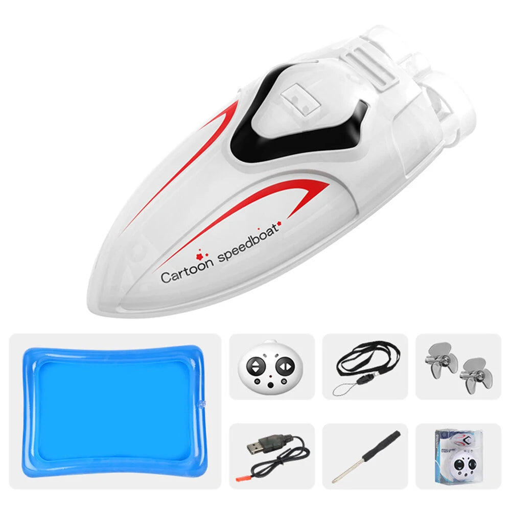 (2) Forward and backward turn left and right to sail, when there is no remote control operation, the ship's propeller stops rotating, and the speedboat will keep hovering on the water surface.