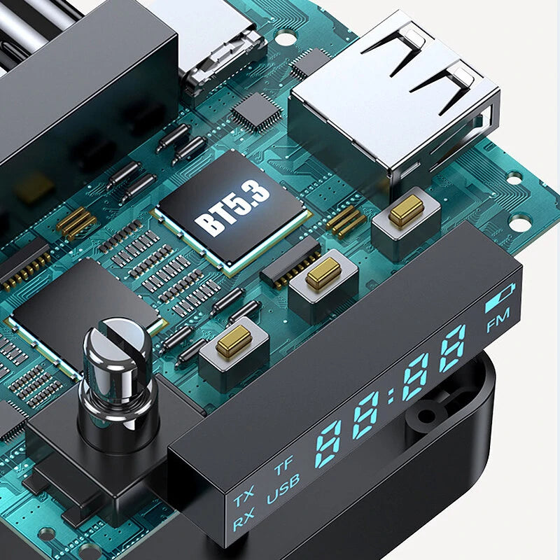 1. Advanced bluetooth Version: Equipped with bluetooth 5.3 technology, ensuring stable and fast wireless connections with a transmission distance of up to 10 meters in open areas without any obstacles.2. Versatile Interface Options: The Digital Display bluetooth Adapter features multiple interface options, including AUX, Dual Channel, U disk, and TF card, allowing you to connect and play audio from various sources.