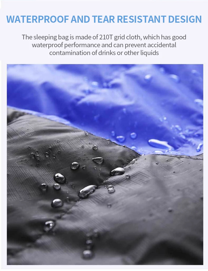4. Premium Down Cotton Fill: The high-quality down cotton fill provides excellent insulation without feeling bulky or constricting. Its breathable and moisture-wicking properties of camping sleeping bag prevent stuffiness and keep you dry, while still allowing for easy movement during your outdoor activities.