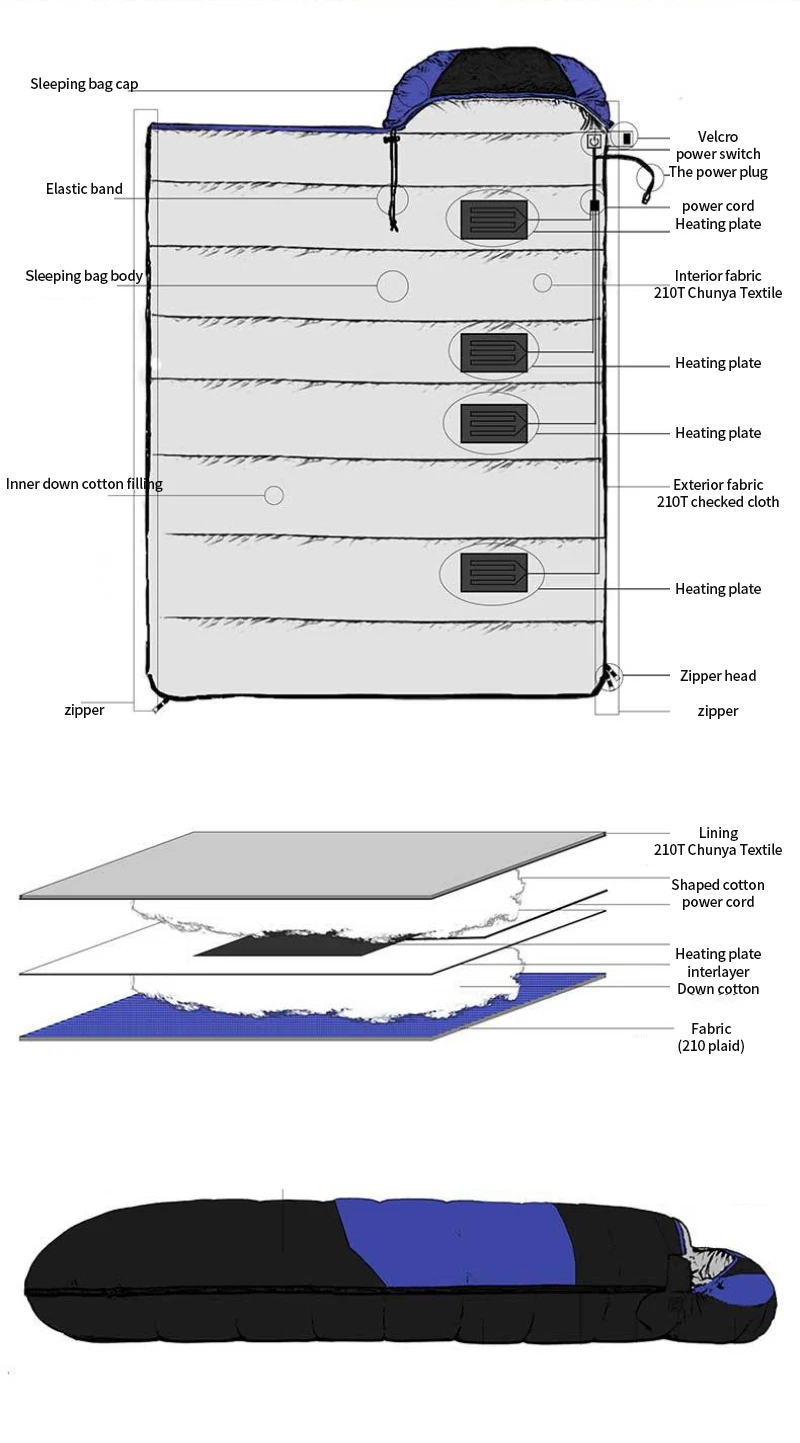 3. Instant Heating in 3 Seconds: With a quick and easy connection to a power bank, this hiking sleeping bag offers instant heating. Simply long-press the switch, and the warmth will envelop you, ensuring a cozy and relaxing night's sleep.
