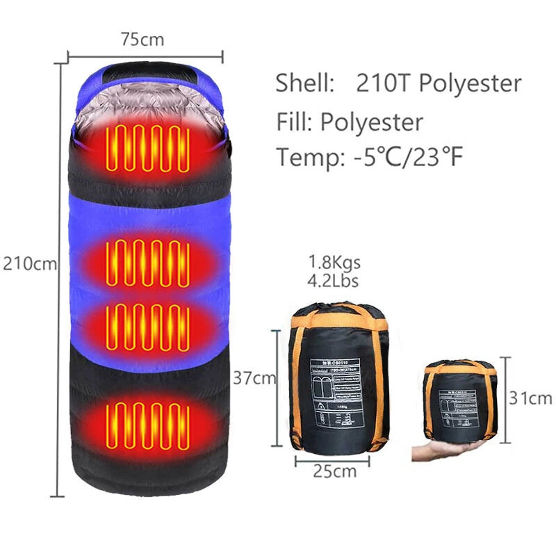 5. Long-lasting Waterproof Design: Made from 210T grid cloth, this heated sleeping bag features excellent waterproof performance and tear-resistant design. It withstands rugged outdoor conditions, ensuring longevity and reliability. Lightweight, making it easy to carry and transport on your outdoor adventures.