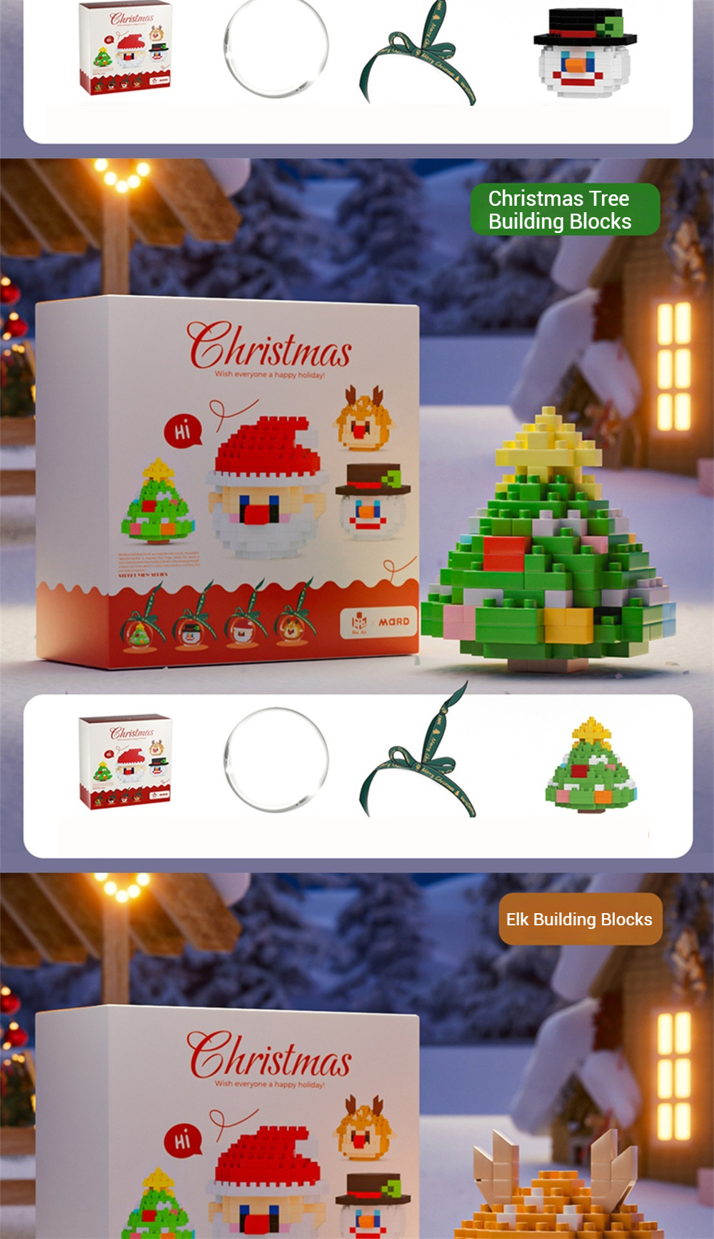 Festive Design: Add holiday cheer with themed mini-building blocks, featuring Santa Claus, Christmas Tree, Snowman, and Reindeer designs. Perfect for spreading joy during the festive season.