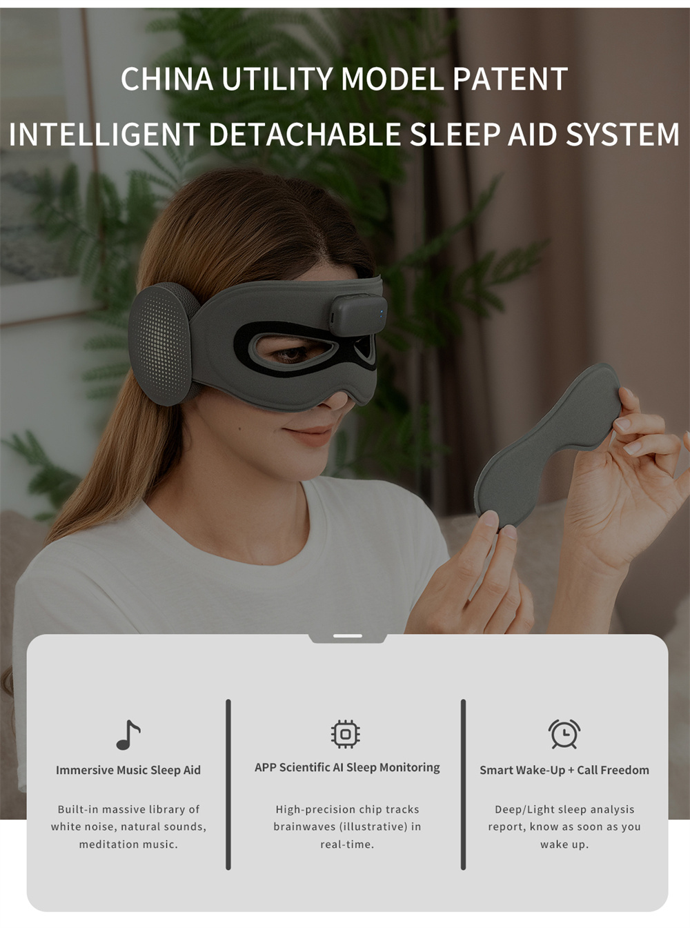 - Smart wake, privacy & easy control: Gentle AI wake from light sleep prevents grogginess. Local data storage with encrypted transmission protects your info. Quick controls on the eyemask and full app management for presets and playlists.