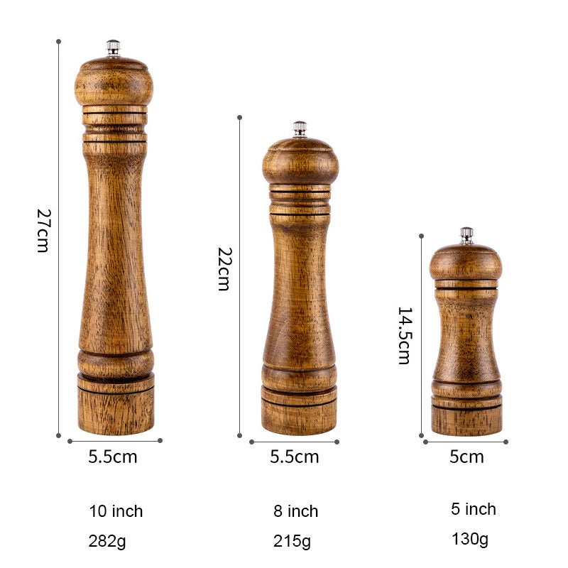 -- Solid wood material: Natural oak wood salt and pepper grinder set, ceramic rotor, no plastic material, non-corrosive, you can use it safely. Stylish and fancy grinders are a must have for any kitchen.