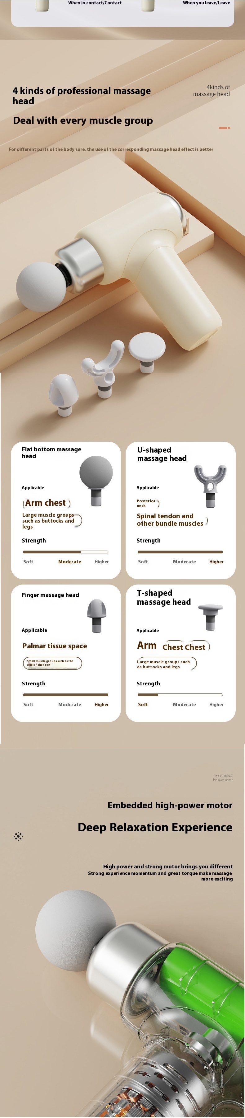 - Four Professional Massage Heads: This device comes with four specializedmassage heads tailored for different muscle groups. The flat head for general purpose, U-shaped head for spine areas, finger head for deep tissue, and bullet head for targeting specific points provide comprehensive muscle relief.