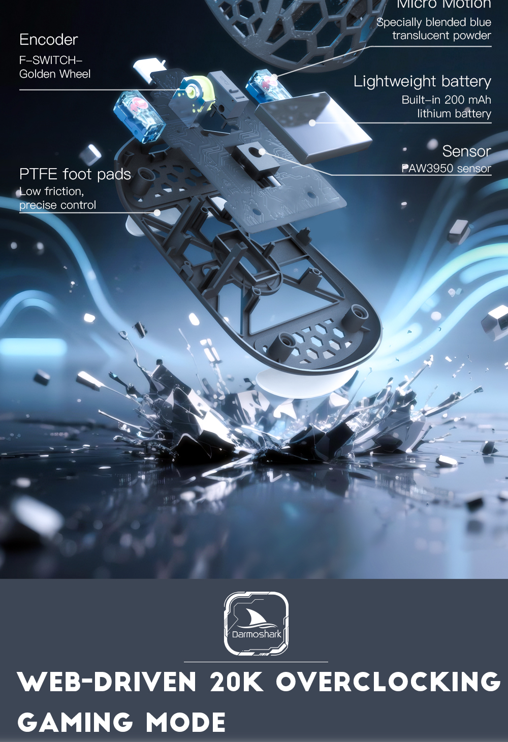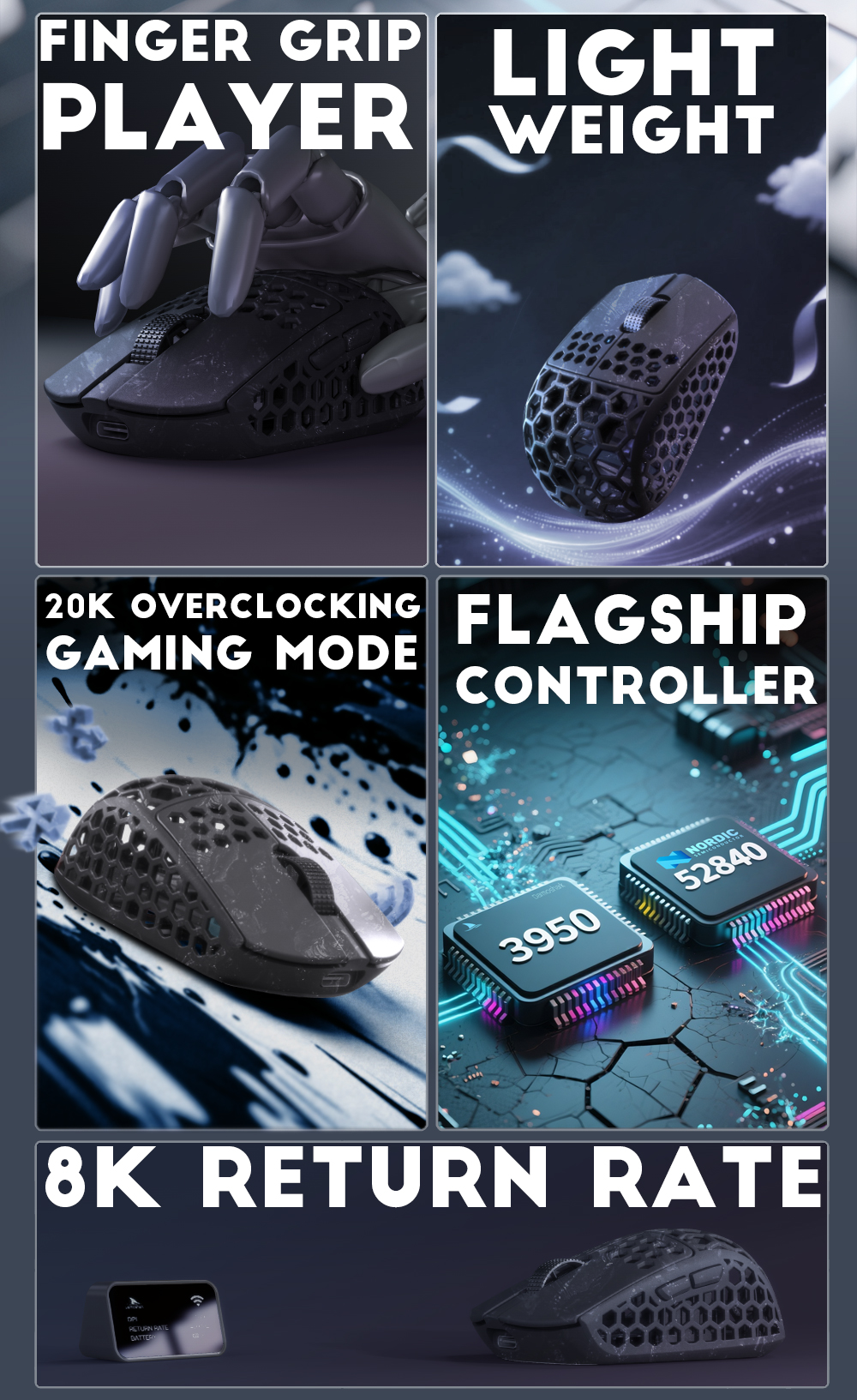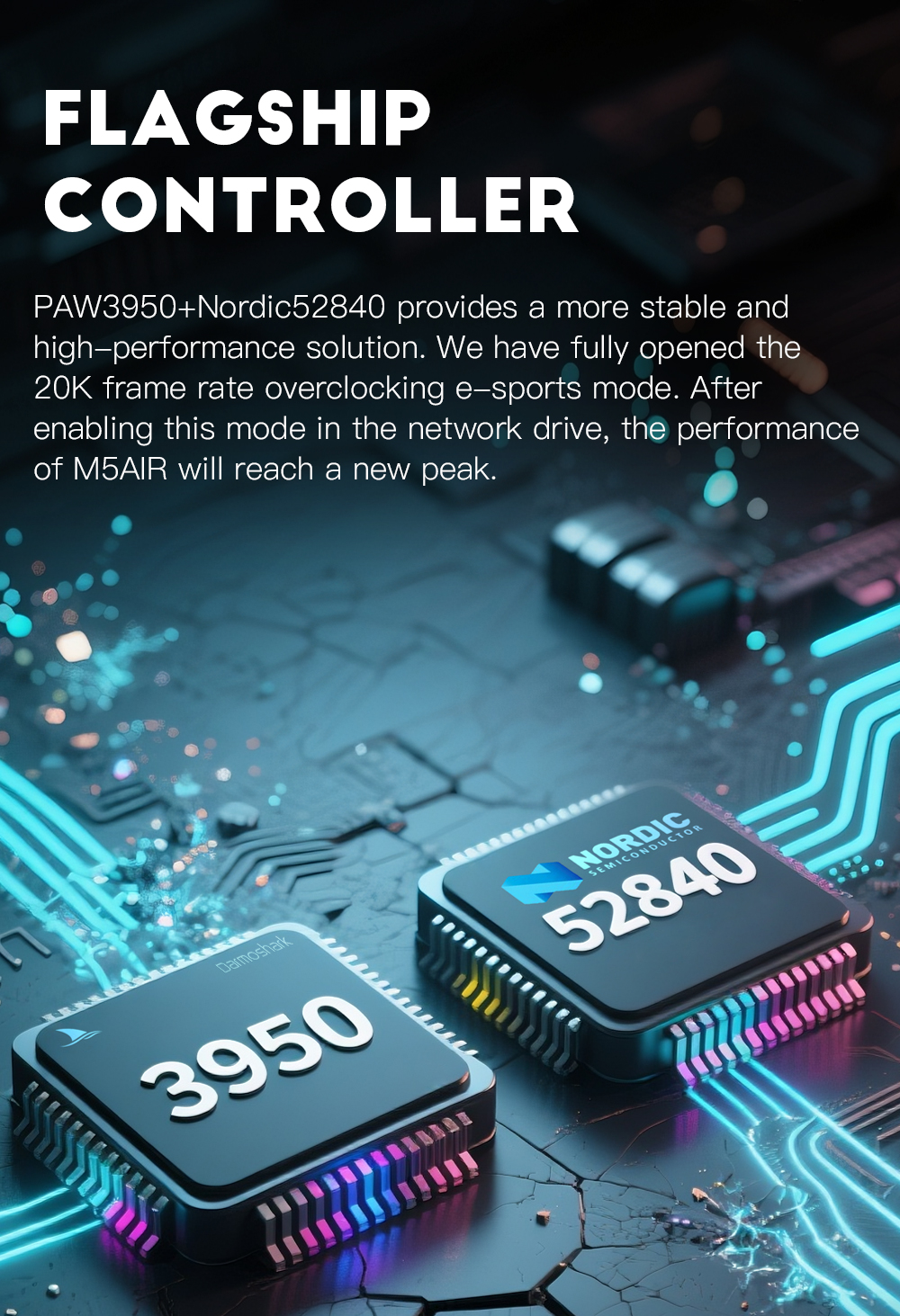 2. Flagship Controller for Stability: Powered by PAW3950+Nordic 52840 chip, unlock maximum responsiveness with a 20K overclock gaming mode.