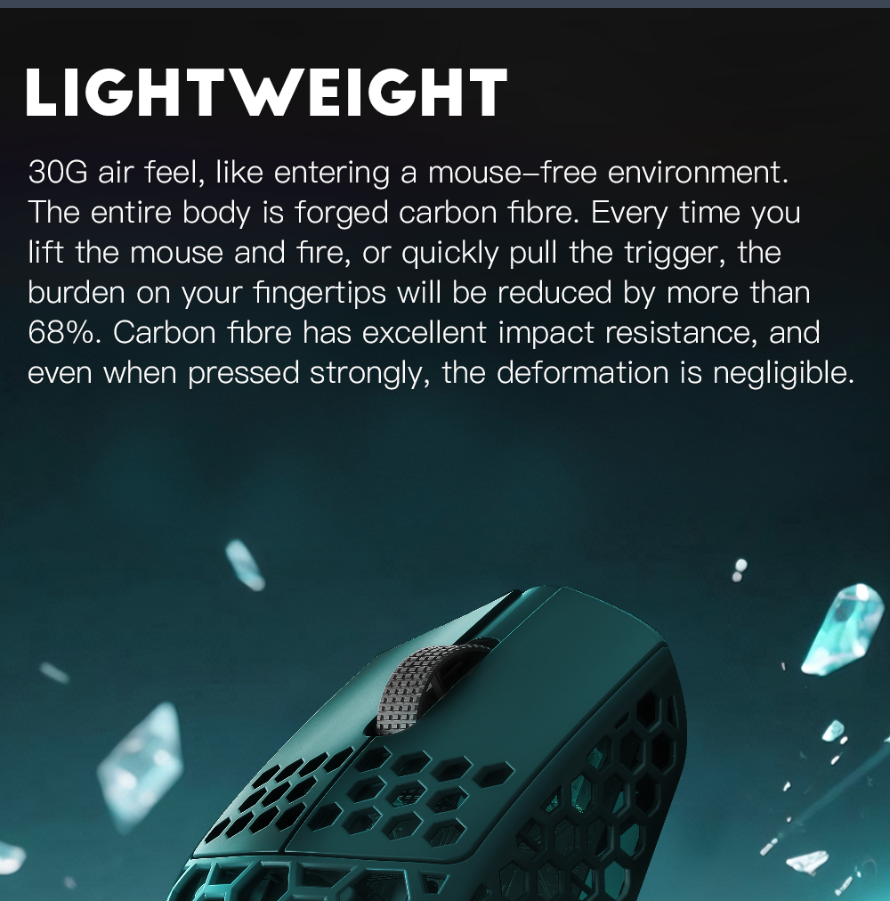 1. Featherweight Gaming Performance: Weighing only 30g, it enables swift movements and reduces finger fatigue for extended gaming sessions.