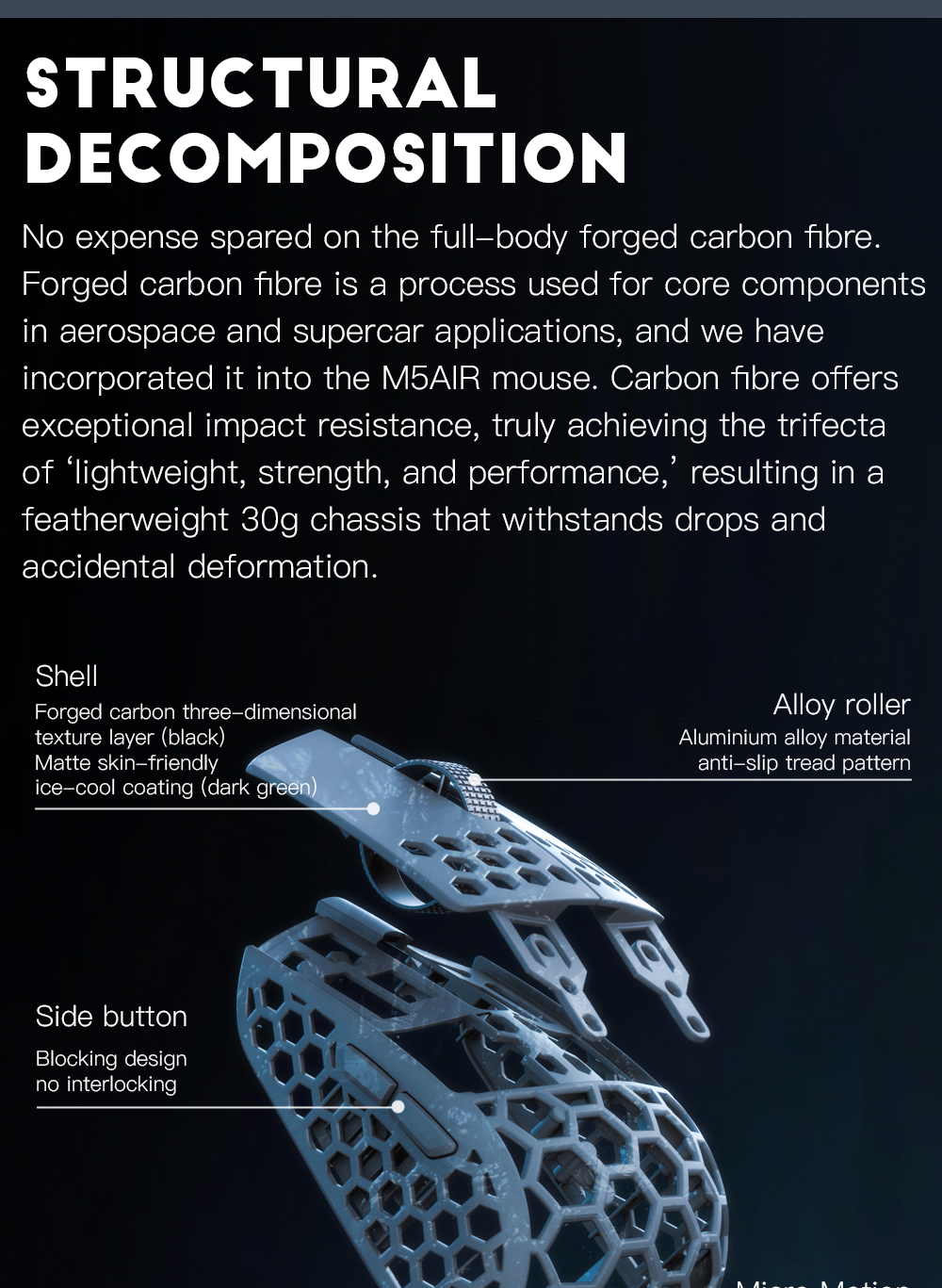 6. Premium Build Quality: Featuring a forged carbon structure for enhanced strength combined with an anti-slip alloy roller for reliable grip during intense gameplay.