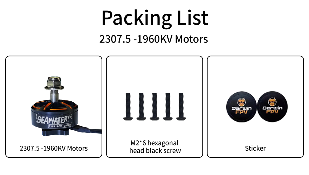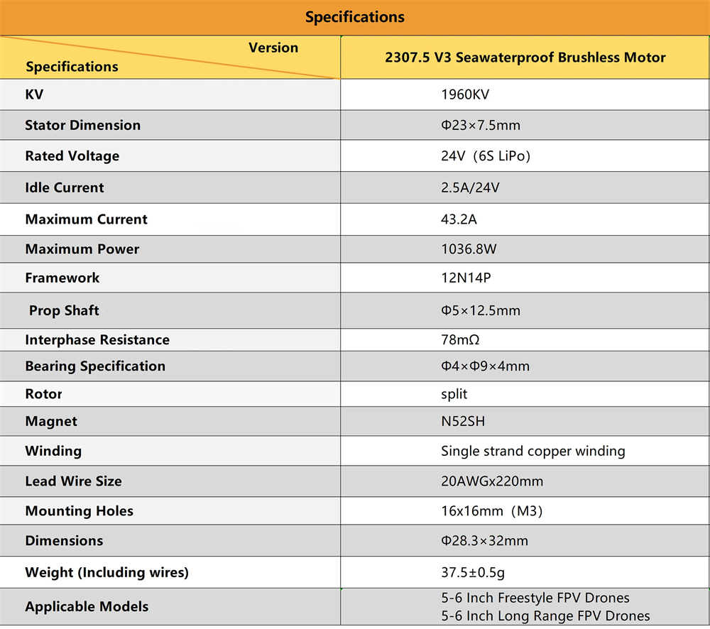 The DarwinFPV 'SeaWater' series motors represent the brand’s highest-quality motor line, built with exceptional performance and adhering to the strictest manufacturing standards. Boasting an IP67 waterproof rating, these motors can be submerged in seawater without the risk of damage. (Note: After use in seawater, rinse the motor surface with fresh water as soon as possible to remove salt residues.)