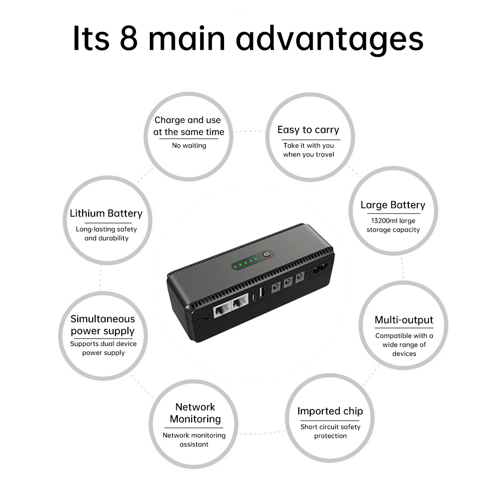Multiple Output Options: Provides a variety of outputs including USB, Type-C, and DC, catering to different device needs.