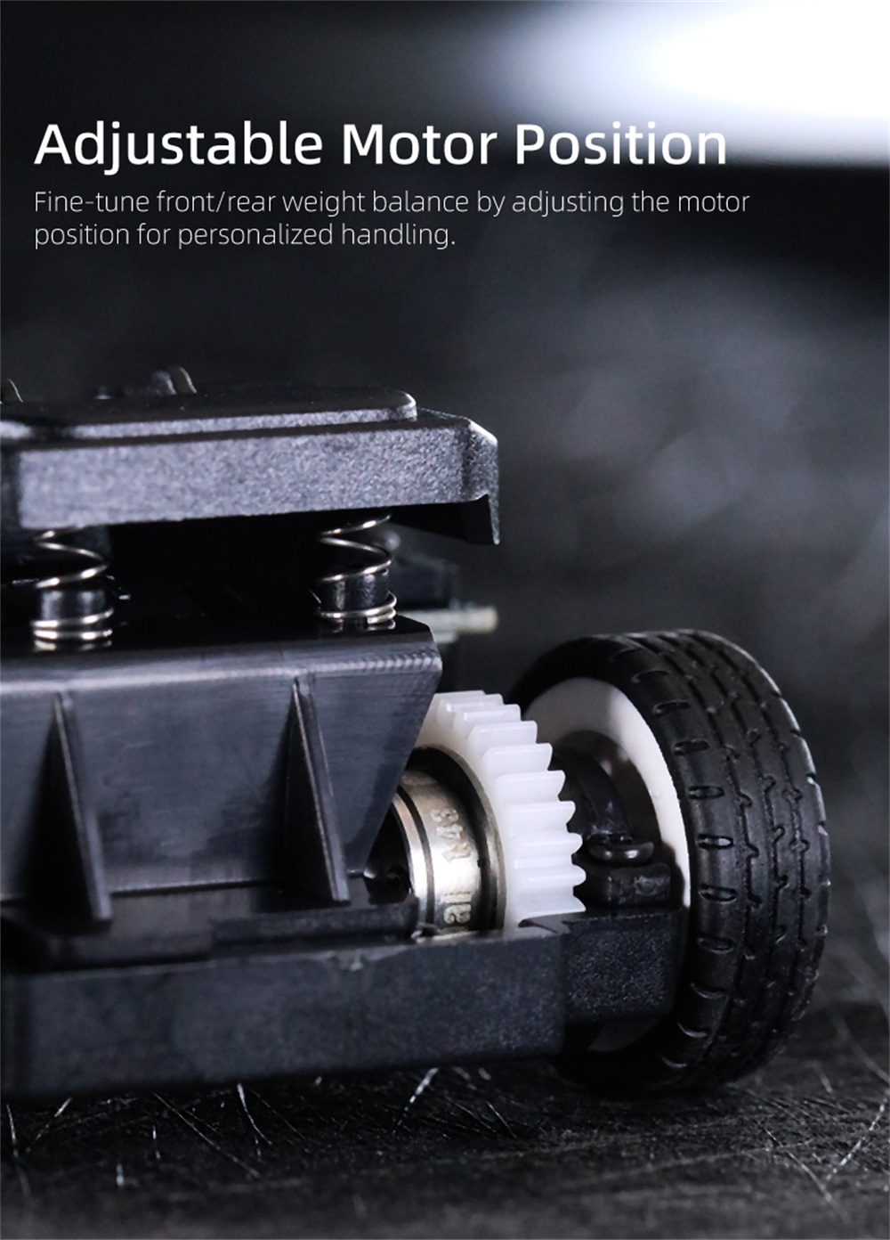 Adjustable motor position,fine-tune front/rear weight balance by adjusting the motor