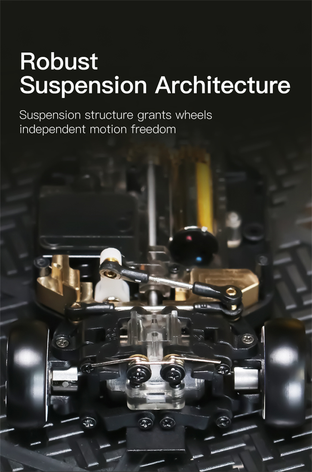 Independent double wishbone suspension,the competitive posture and feel are comparable to standard electric rooms and the static display is also very delicate