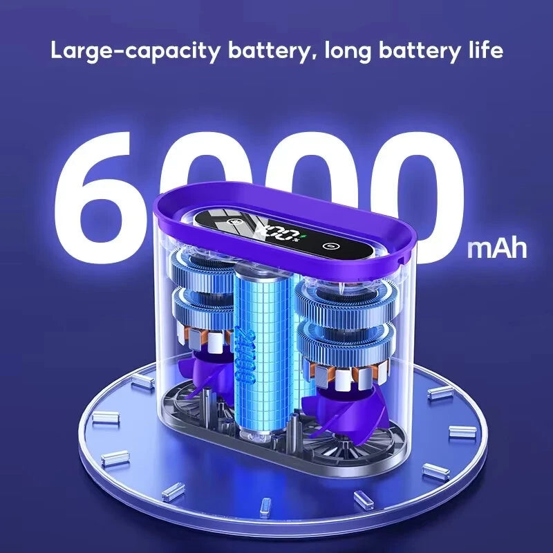 Equipped with a 6000mAh battery, providing extended operation time. Type-C fast charging ensures quick recharge.