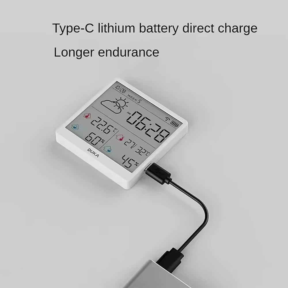 Features a 4.3-inch color LCD screen with a thickness of 13.3mm. The screen is designed for sharp, adjustable size fonts, making it easy to read from different angles and providing immediate insights into environmental changes.