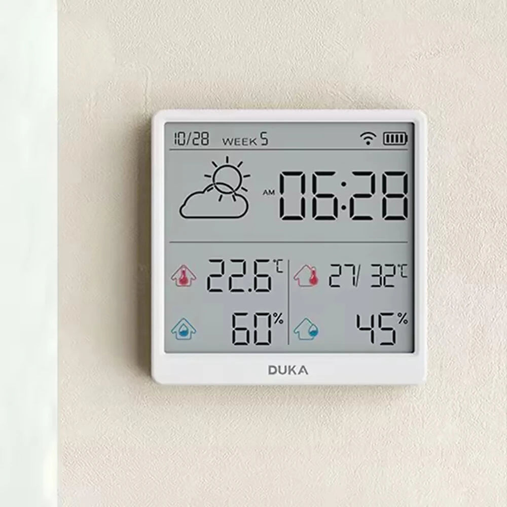 Automatically updates outdoor weather information when connected to a mobile device. Conveniently display temperature and humidity with clear icons, ensuring real-time visibility under any weather condition.