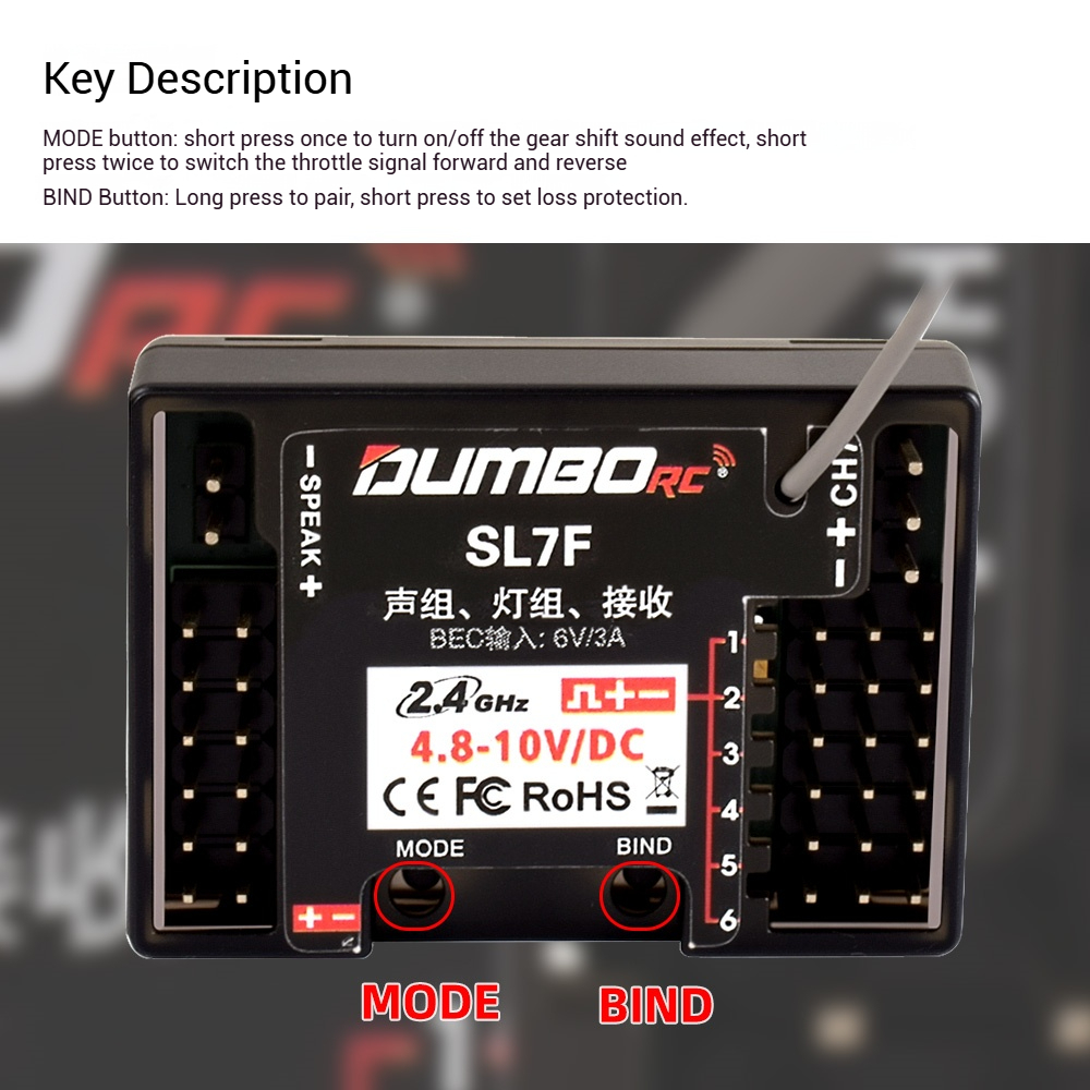3. Easy Operation: MODE and BIND buttons simplify signal setting and loss protection adjustments.