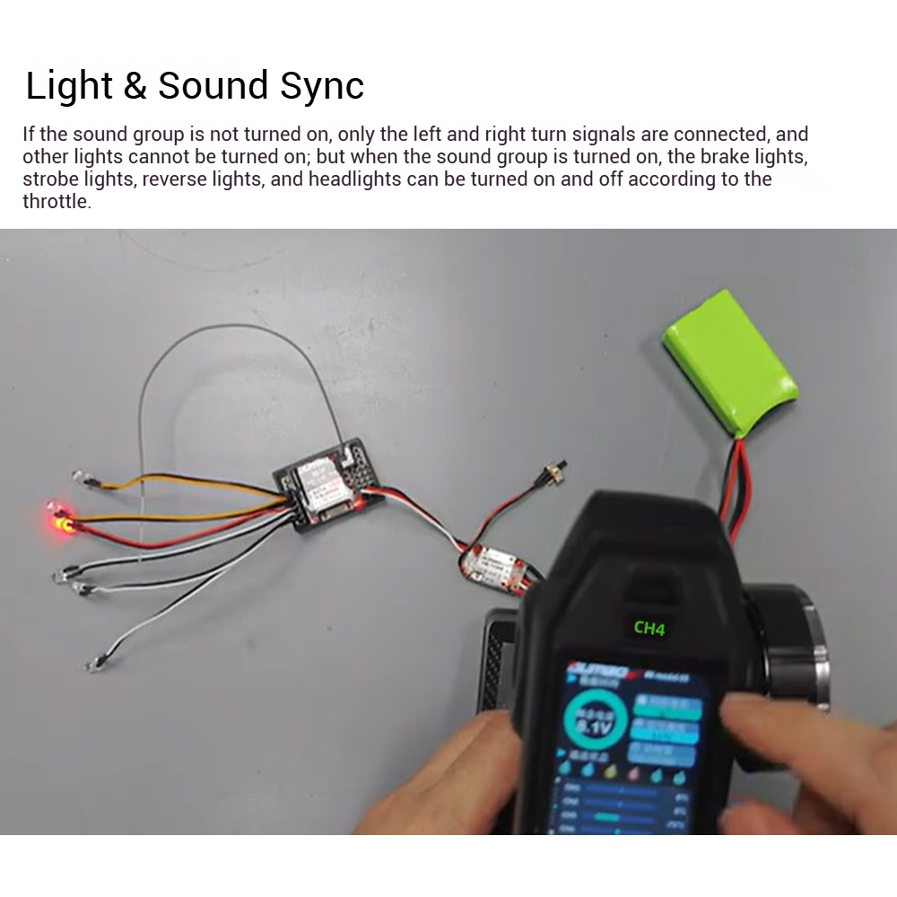 2. Multi-Functional Design: Integrated sound system and lighting control for enhanced RC vehicle realism.