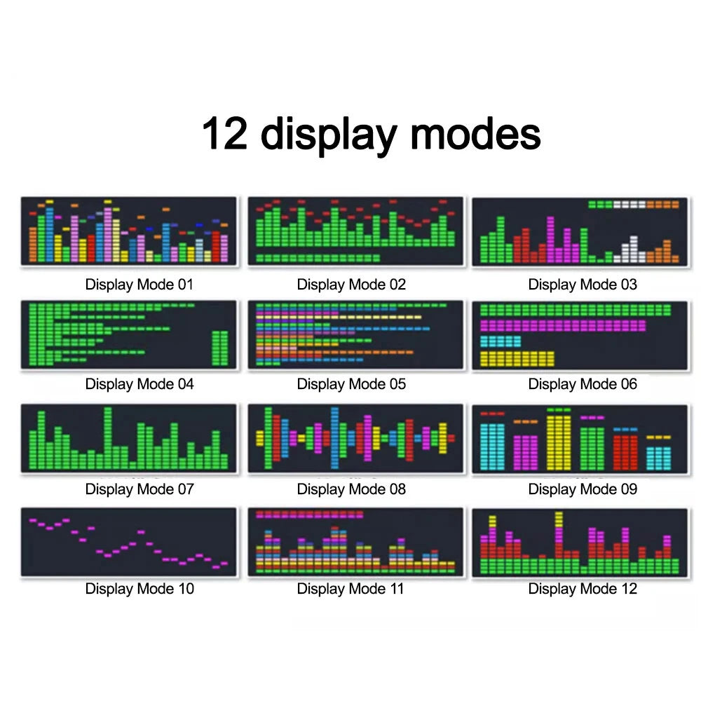 - Made from top-quality ABS materials, the LED Music Spectrum Rhythm Display guarantees excellent product quality and longevity. Its robust build ensures that it maintains its sleek appearance and functionality over time.