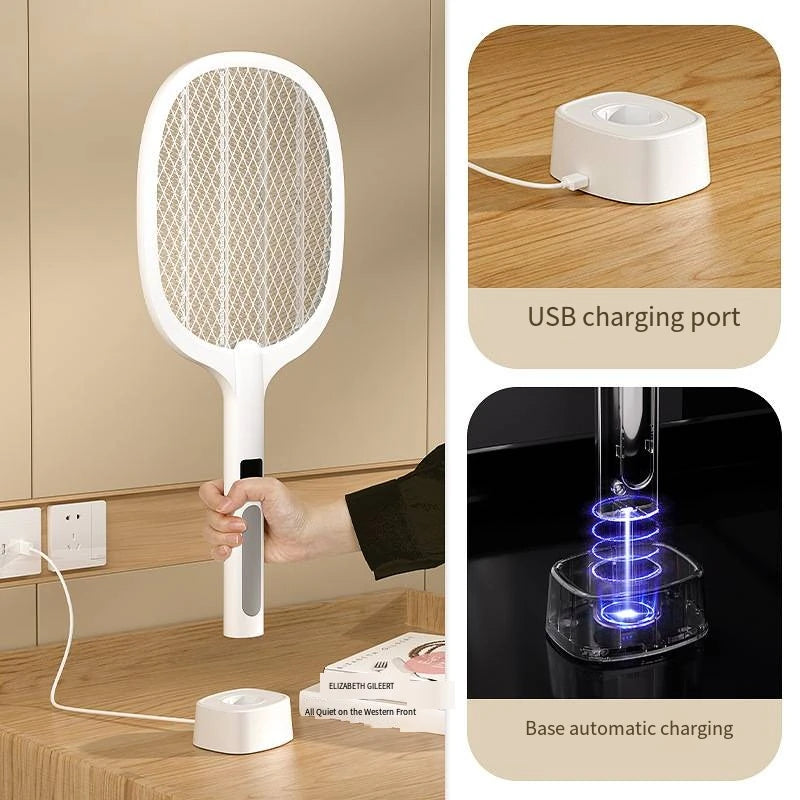 2. Purple Light Band: The built-in purple light band attracts mosquitoes, enhancing the swatter's effectiveness. It has six mosquito inducing lamp beads for optimal performance.