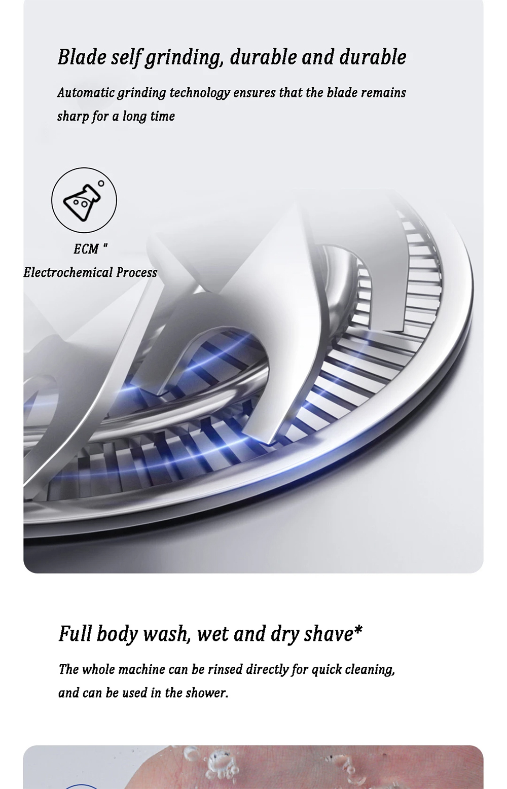 - Intelligent Shaving System: The ESM intelligent shaving system offers a smart solution for maintaining consistent shaving performance. It automatically adjusts power to ensure a steady, powerful shaving experience, even when the battery is low.