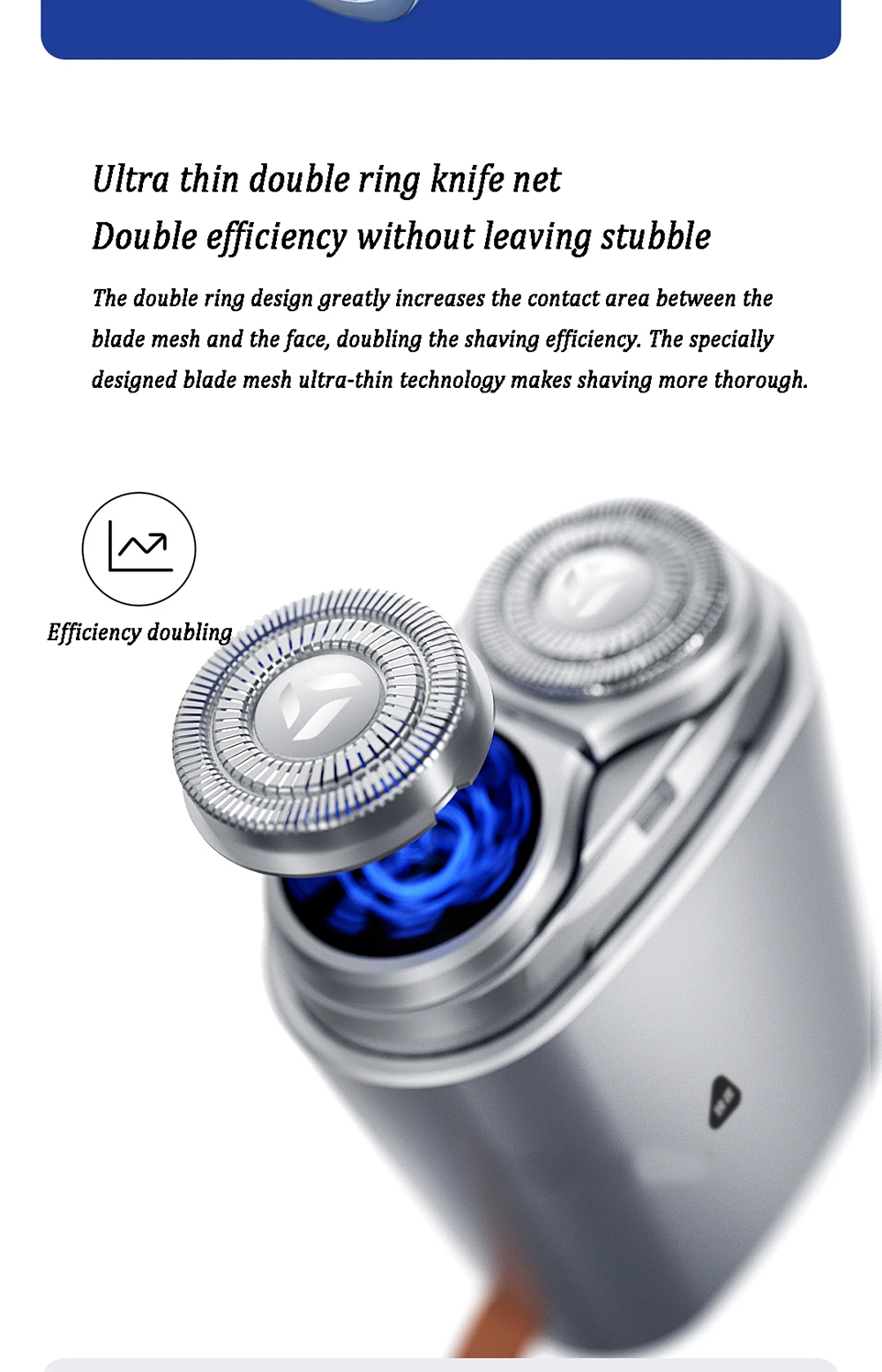 - Precision Cutting System: The thin double-ring blade net increases the contact area with your skin, resulting in a faster, more efficient shave. This precise cutting system ensures that you get a close shave without any nicks or cuts.