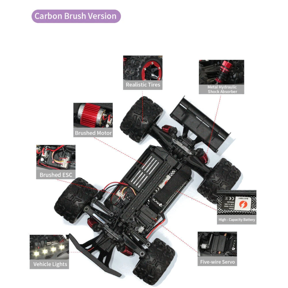 Brushed or Brushless version is optional chosen by yourself ESC:Brushed esc/25A brushless 3 in 1 esc Motor:380 brushed motor/2440 brushless motor Servo:5 wires 9g servo/3 wires servo |